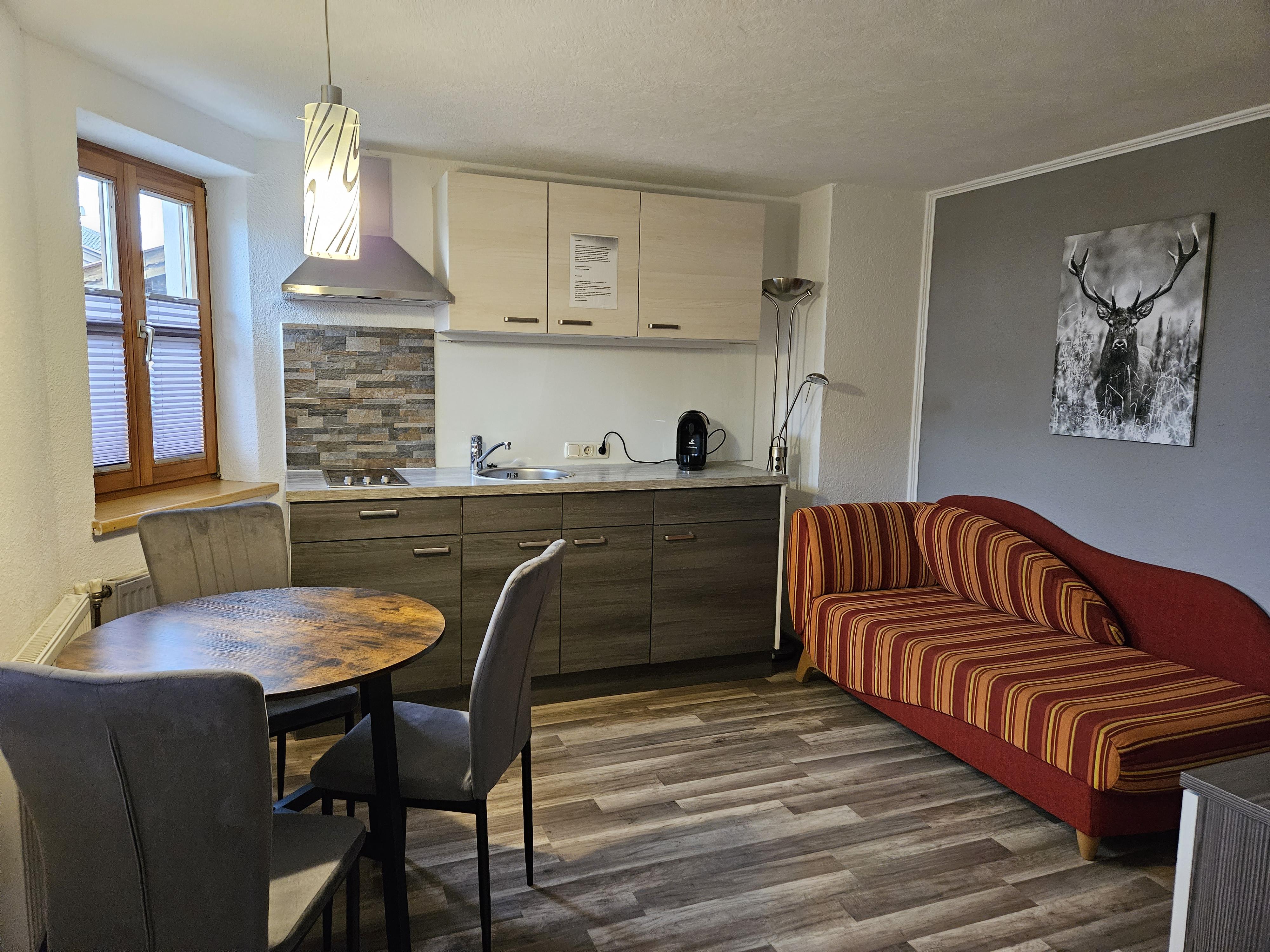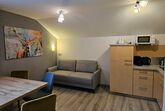 Appartement Michaela:50m2 2 getrennte Schlafzimmer, 1 Wohn-Schlafraum mit Küchenblock, komplett ausgestattet mit Kaffeemaschine, Toaster, Wasserkocher, 4 Platten E-Herd und Mikrowelle, Dusche, WC, Balkon, Flat Sreen TV, Radio gratis Internetzugang