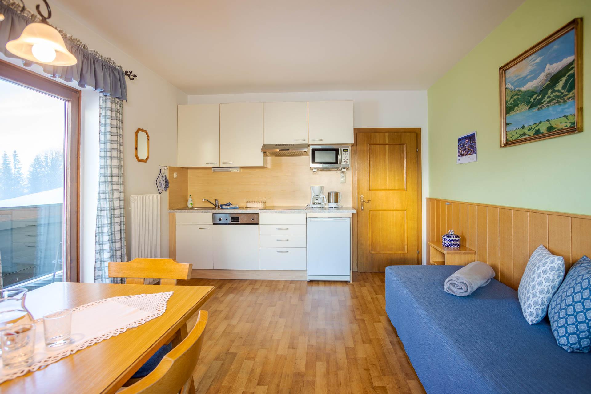 Die Ferienwohnung mit einer Fläche von 40 m² und zusätzlichem Doppelzimmer mit 17 m² bietet Platz für bis zu 5 Personen