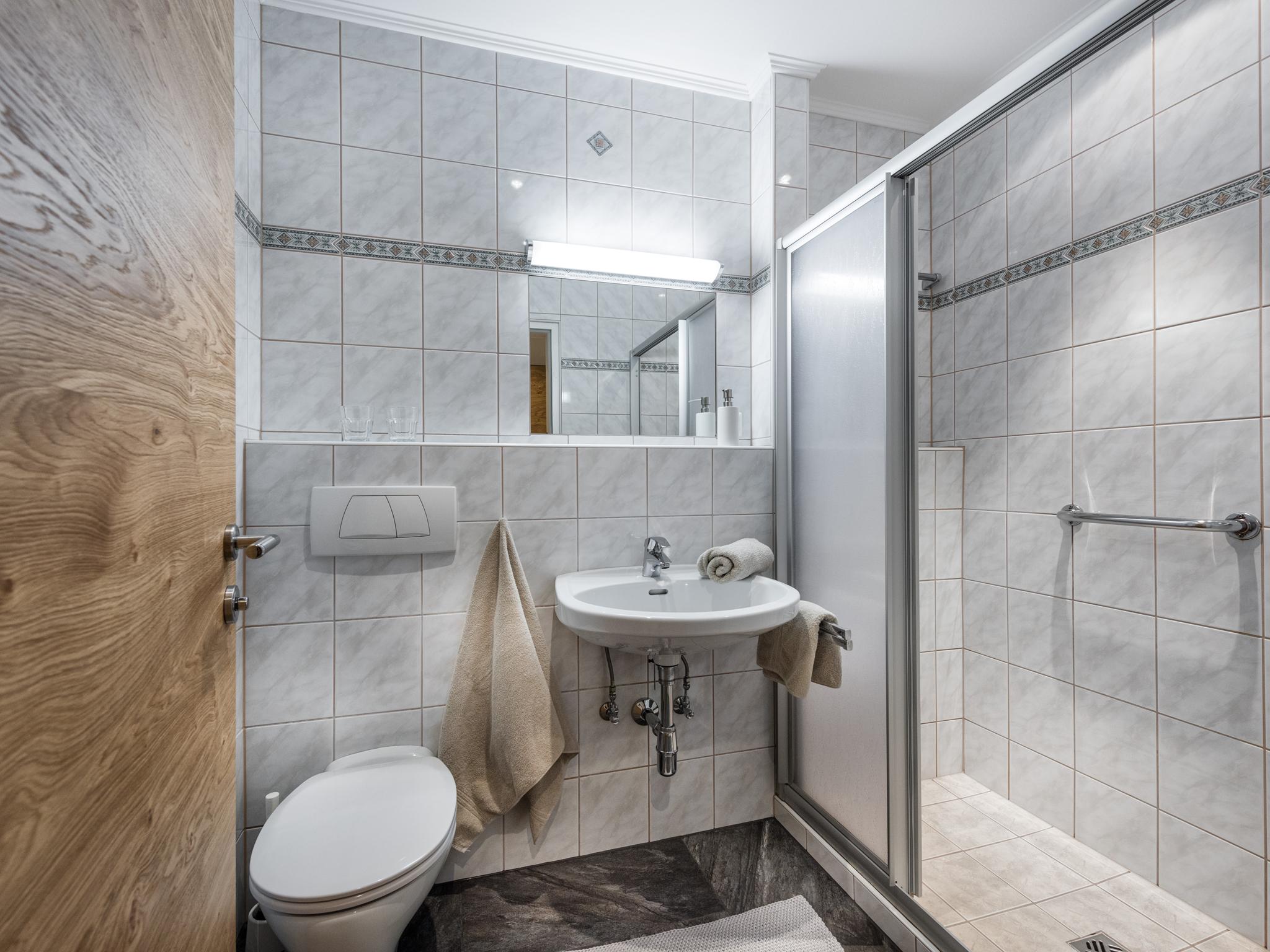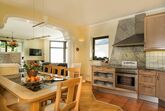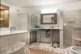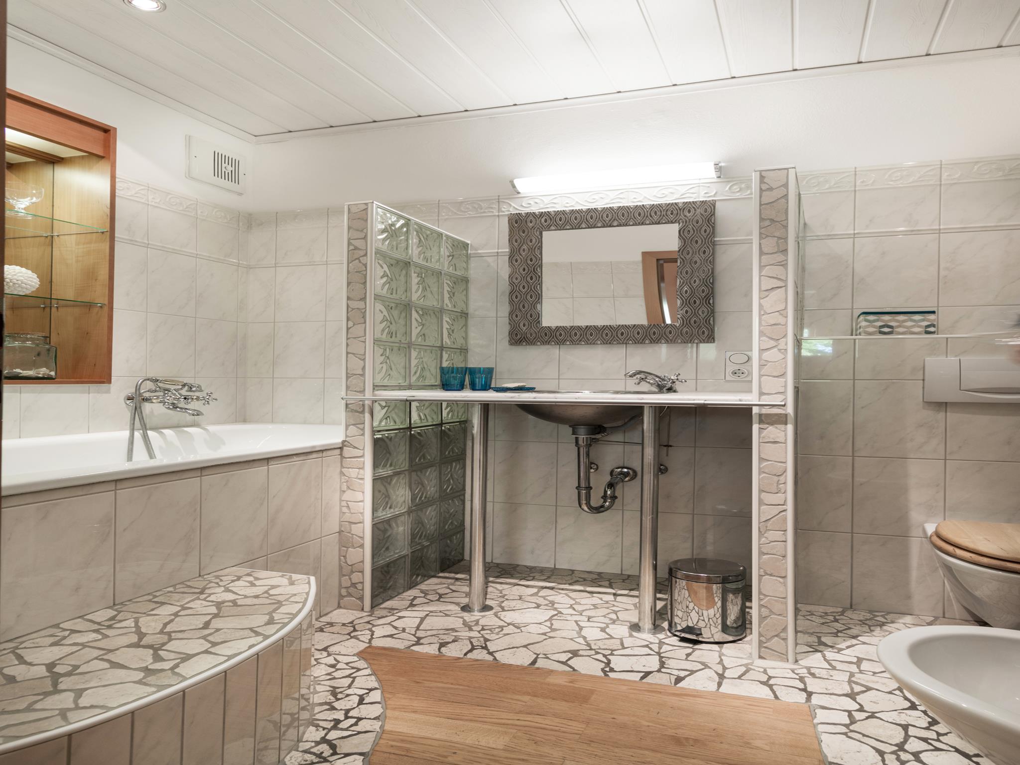 Im Erdgeschoss befindet sich darüber hinaus noch eine große Ferienwohnung mit 3 Schlafzimmern, 2 Bädern mit WC - eines mit Bidet und Badewanne und eines mit großer Dusche - einem sehr großen Küchen-Esszimmerbereich, der durch einen Kachelofen vom Wohnzimmer getrennt ist.