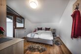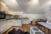 Im Erdgeschoss befindet sich darüber hinaus noch eine große Ferienwohnung mit 3 Schlafzimmern, 2 Bädern mit WC - eines mit Bidet und Badewanne und eines mit großer Dusche - einem sehr großen Küchen-Esszimmerbereich, der durch einen Kachelofen vom Wohnzimmer getrennt ist.