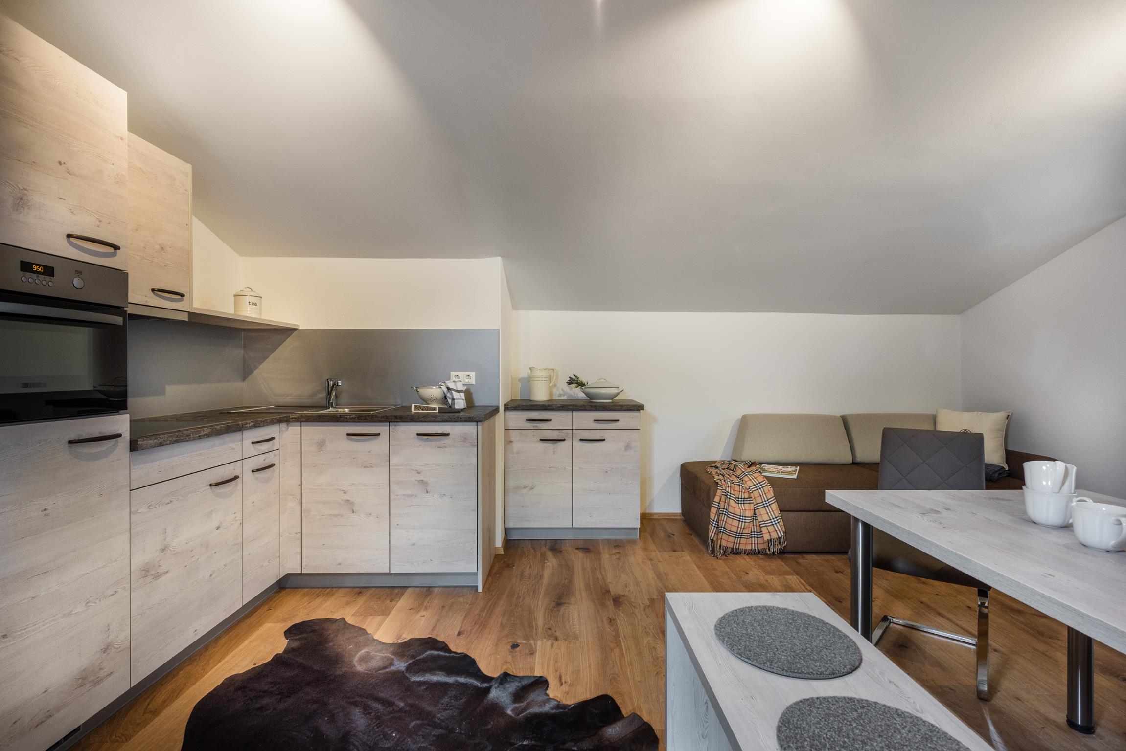 Sie können zwischen 2 Ferienwohnungen mit Balkon und 3 Ferienwohnungen mit Terrasse wählen. Die beiden kleineren Wohnungen sind ca. 50 qm groß und setzen sich folgendermaßen zusammen: Eingangsbereich, Bad/WC mit Dusche, Schlafzimmer für maximal 2 bzw. 3 Personen, Küche mit Esszimmerbereich sowie einem Wohnzimmer mit Schlafmöglichkeit für bis zu 2 zusätzlichen Personen.