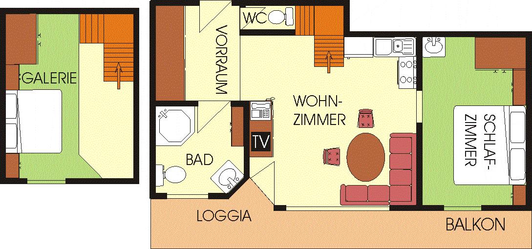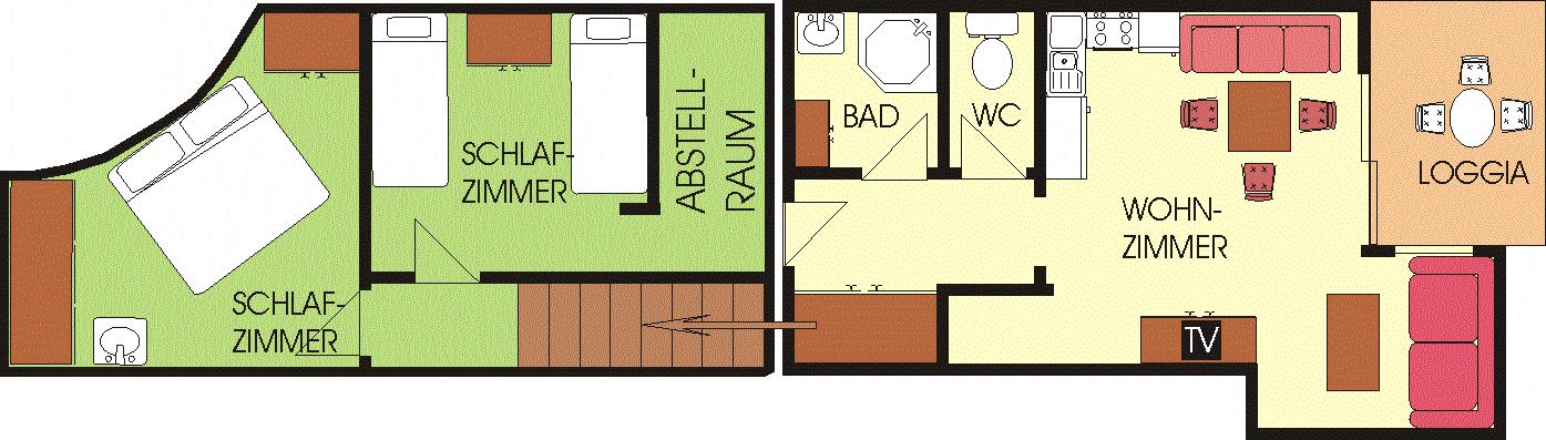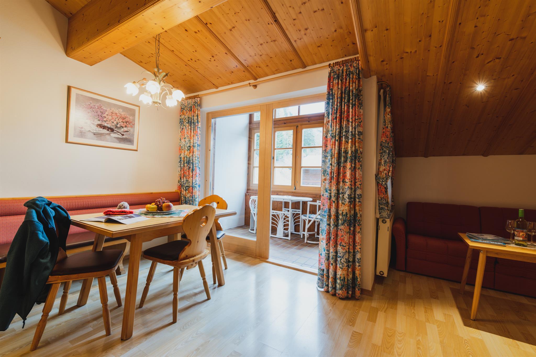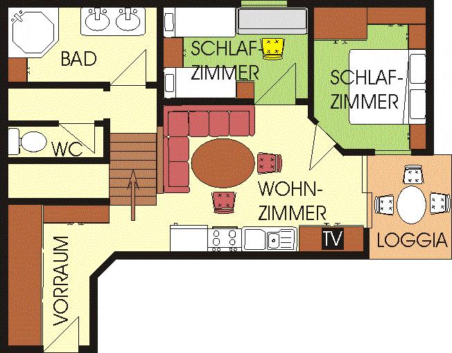 Bis 4 Personen | 60 m² - 67 m² | 2 Appartements: 1 Schlafzimmer mit Doppelbett und 1 Schlafzimmer mit zwei Einzelbetten | 2 Appartements:1 Schlafzimmer mit Doppelbett und einem Doppelbett auf der offenen Loggia oberhalb des Wohnraums | großzügiger Wohnraum | Badezimmer mit Dusche und getrenntem WC | Balkon oder Wintergarten mit Hochkönigblick | geeignet für Paare, Familien und Freunde
