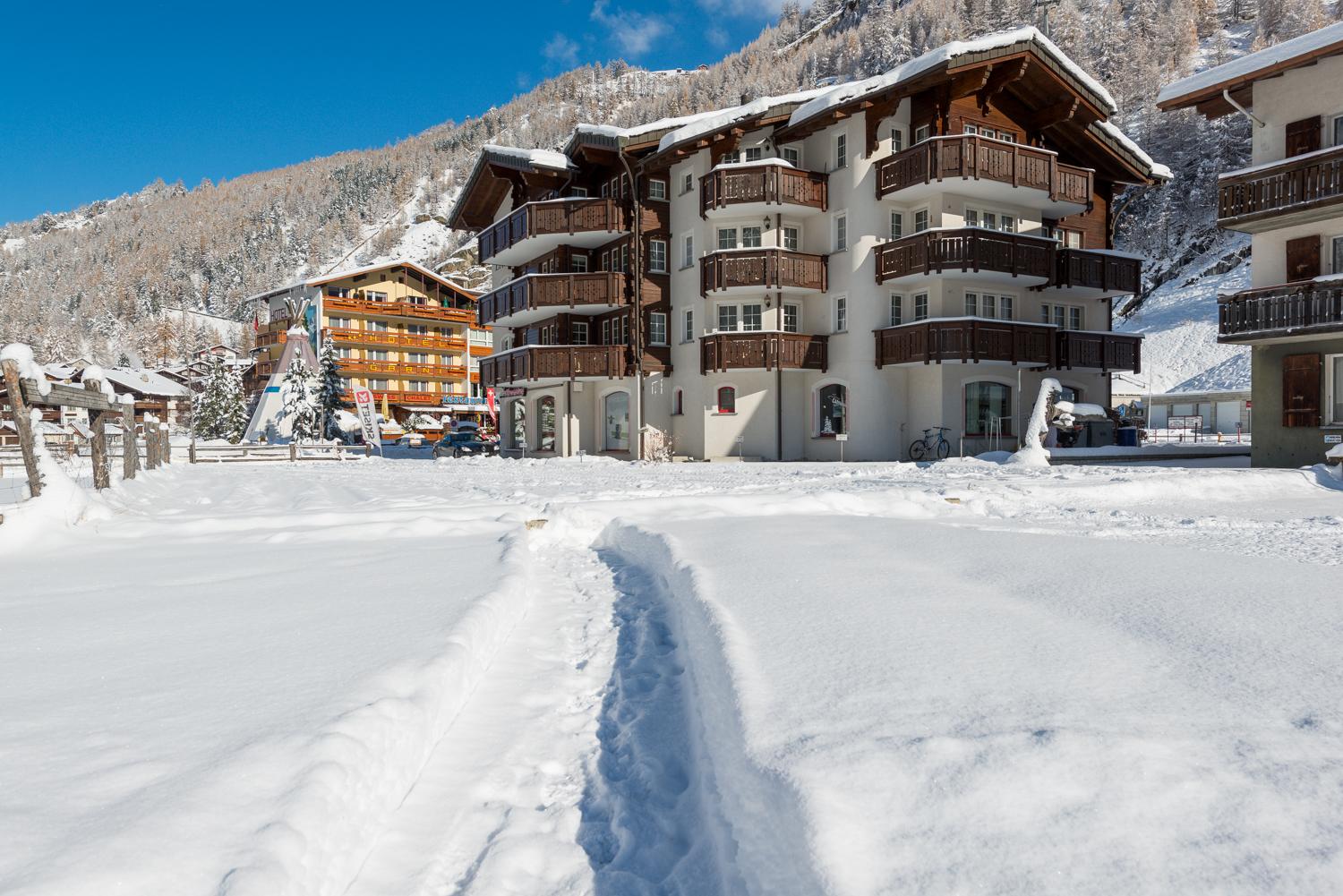 Das 1997 gebaute Mehrfamilienhaus Evita steht in sonniger und zentraler Lage, unmittelbar neben der Talstation der Bergbahnen Hohsaas AG, Skibushaltestelle nahe beim Haus. Die Wohnungen sind freundlich und gemütlich eingerichtet, alle mit TV und Radio, Geschirrspüler, Kaffeemaschine, geheizter Skiraum, Waschküche mit Münzwaschmaschine und-Trockner, Lift und Parkplatz beim Haus ergänzen das Angebot. Skifahren bis vor die Haustüre.