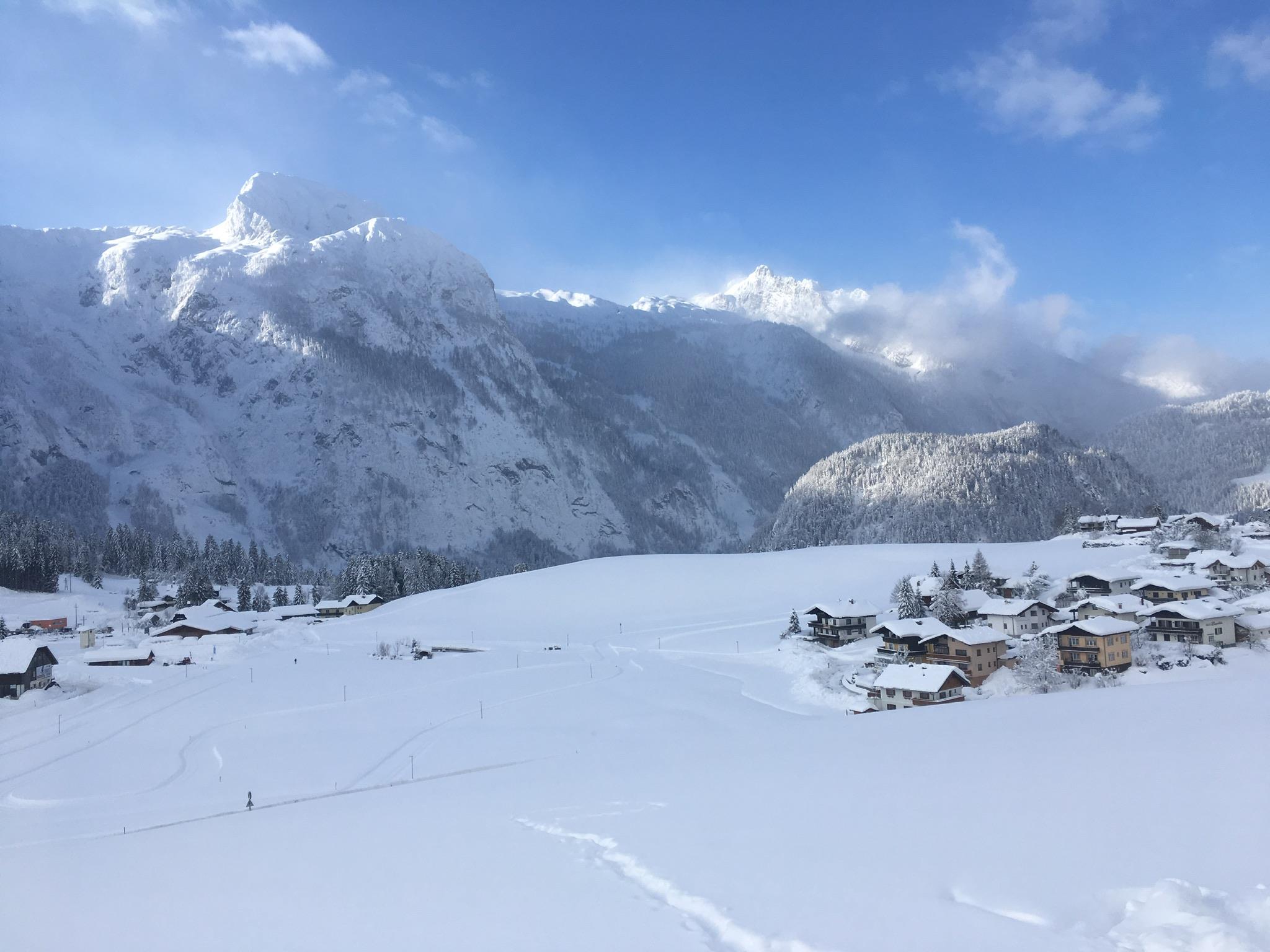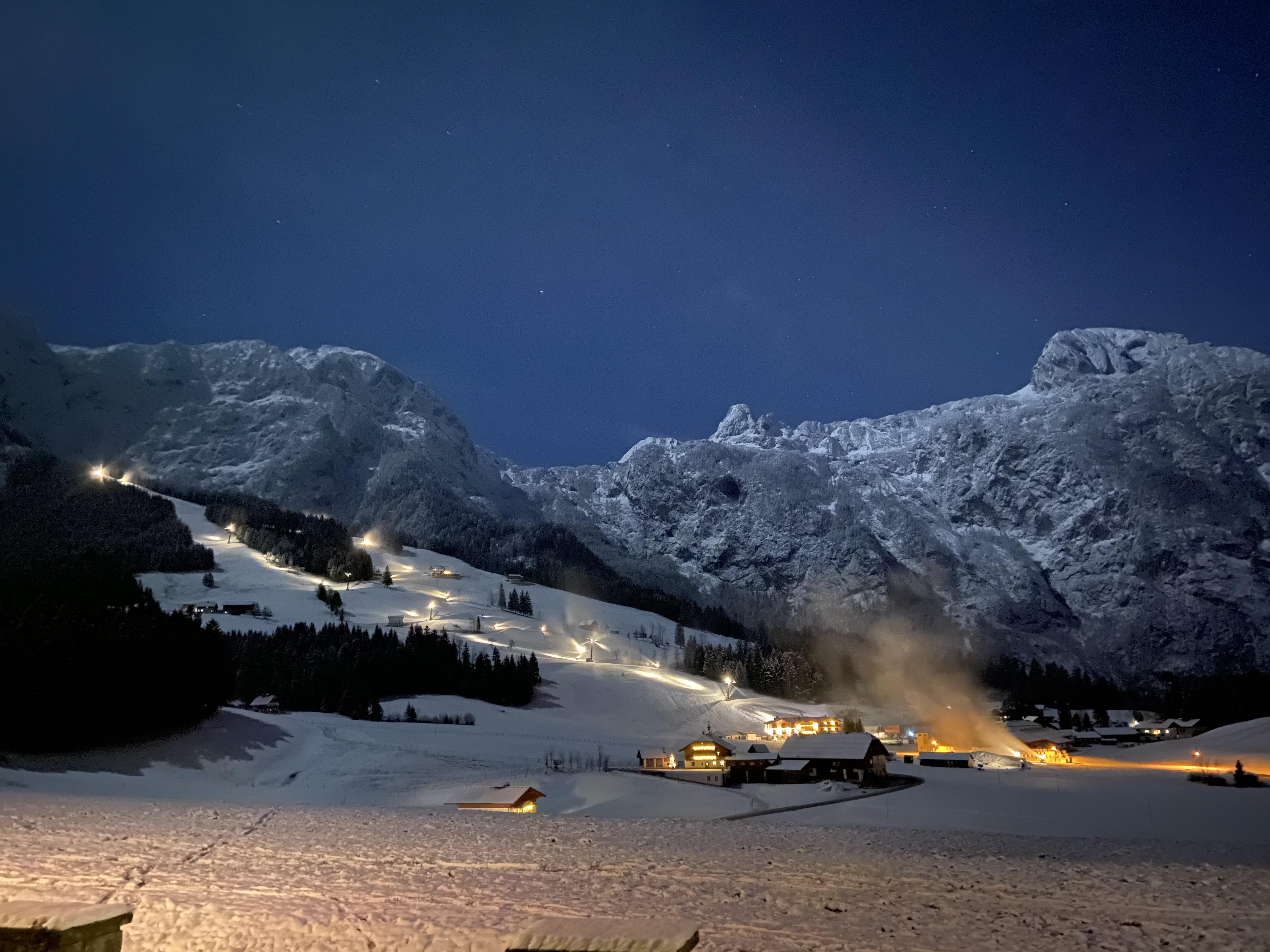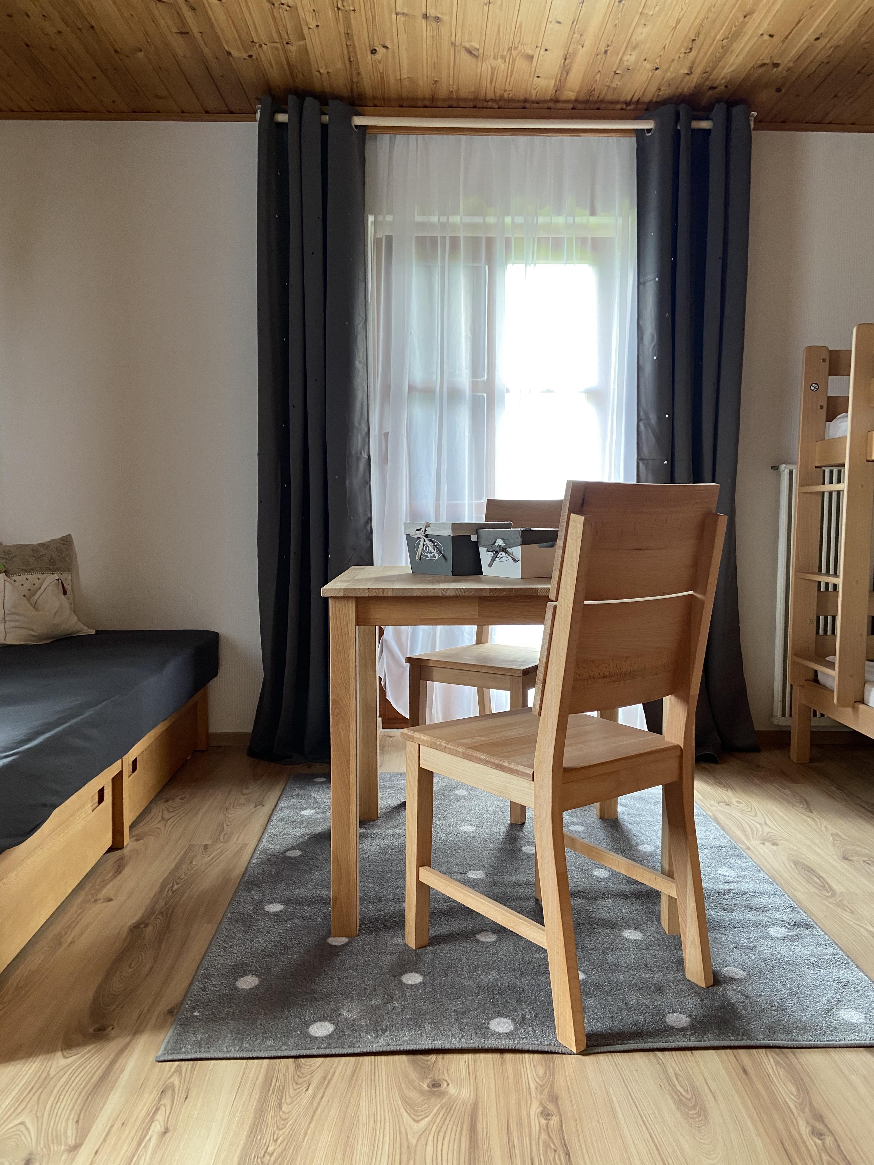 Das Familienzimmer bietet auf 35 m² Platz für 4 Personen. Es handelt sich um 2 Doppelzimmer die durch einen extra Flur voneinander getrennt sind. Neben einem Badezimmer mit Bad und Dusche und einem WC verfügt das Zimmer auch über 2 Balkone mit Ausblick auf der Tennengebirge bzw. den Karkogel.