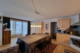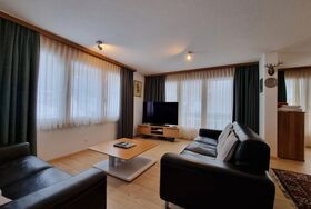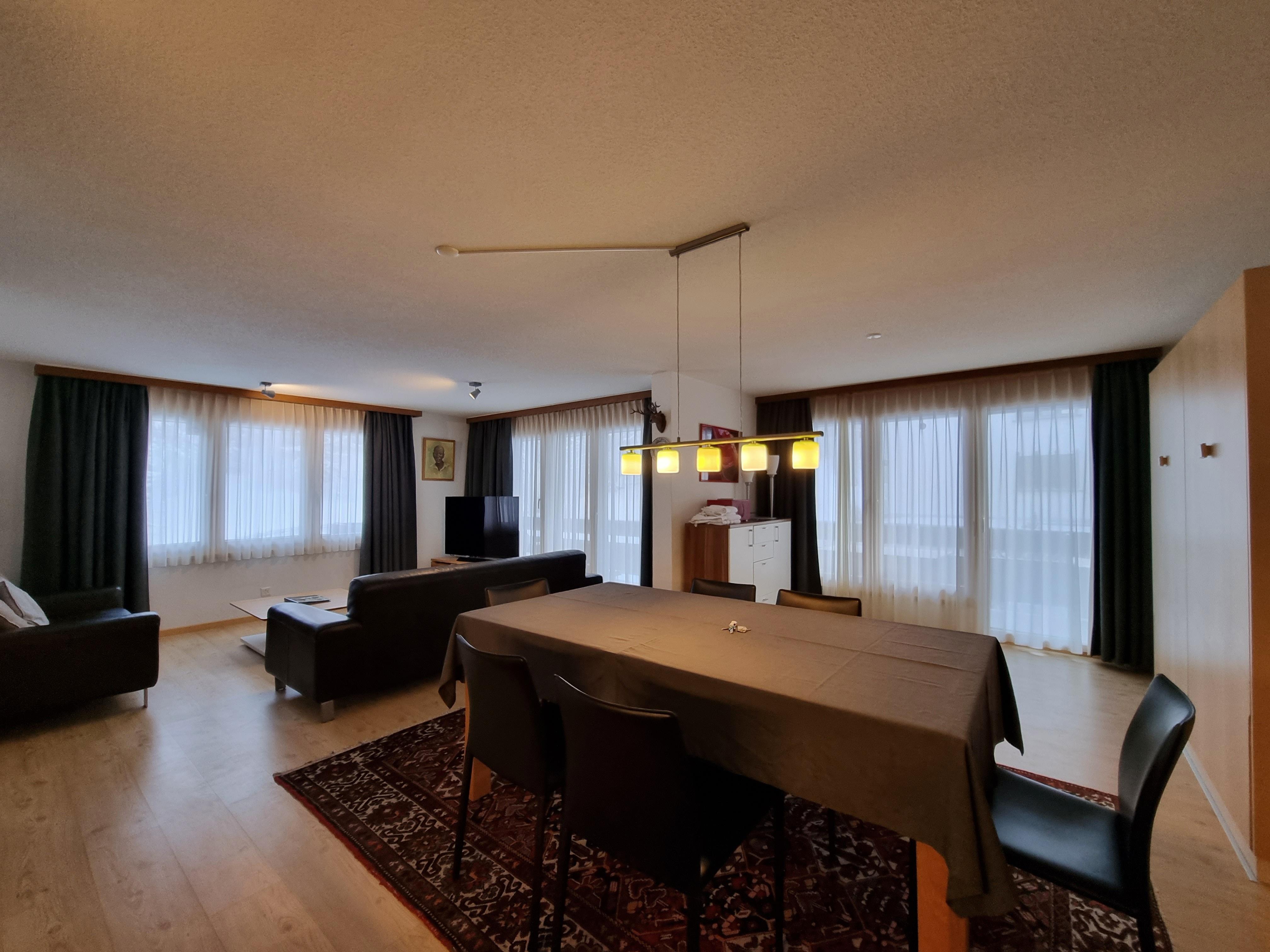 Neu renoviertes, modernes Apartment im Haus Mischi. Das Apartment hat 2 Schlafzimmer. In beiden Schlafzimmern befindet sich je ein Doppelbett und ein eigenes Waschbecken. Ein Schlafzimmer hat ausserdem einen eigenen Balkon mit Ausblick auf die Alpin Express. Im Wohnzimmer befinden sich zudem 2 Klappbetten. Dies ermöglicht eine Kapazität von 6 Personen. Im Apartment befinden sich auch 2 Badezimmer. 1 Badezimmer ist ausgestattet mit einer Badewanne, WC & Waschbecken, das Zweite mit Dusche, WC, Waschbecken. Die offene Küche ist ebenfalls auf dem neusten Stand mit zahlreichen Küchengeräten wie Nespresso Maschine, Fonduepot, Racletteofen etc. Das Wohnzimmer ist sehr geräumig und hat einen Ausgang zum schönen Balkon.