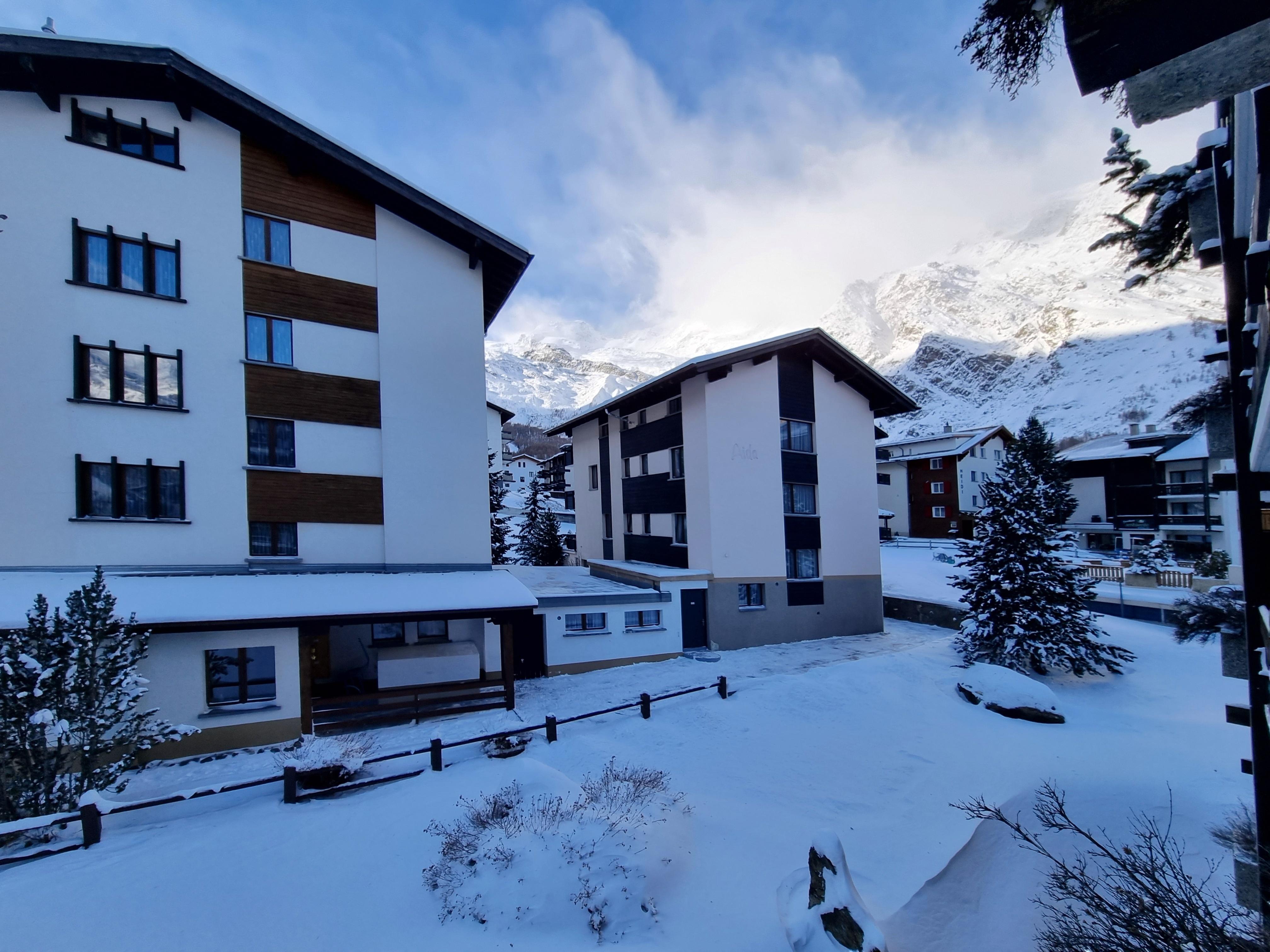 Das Haus Mischi hat eine der besten Lagen in Saas-Fee. Die Alpin Express ist gleich gegenüber und man kann bis vor das Apartment Skifahren.