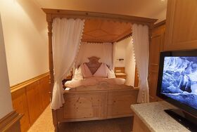 Apartment für 2 Personen, mit Zusatzbetten bis 4 Personen. Wohn-Schlafraum mit romantischem Himmelbett und Schlafcouch, Dusche/WC mit Fön, voll ausgestattete Küche, gemütlicher Essbereich, Flat-TV und kostenloses WLAN.