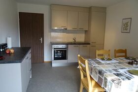 Gemütliche 3.5-Zimmer-Wohnung für 4-5 Personen (77 m²). Das einladende Wohnzimmer verfügt über eine Sitzecke, TV, DVD-Player und einen Süd-Balkon. Die geschlossene, moderne Küche mit Esstisch und Zugang zum Südbalkon ist bestens ausgestattet, u.a. mit Geschirrspüler, Nescafé Dolce Gusto Kaffeemaschine, Fondue-Set und Racletteofen. Grosses Doppelzimmer und ein weiteres Zimmer mit Doppel- und Einzelbett. Badezimmer mit Dusche/WC sowie zusätzliches Gäste-WC. Gratis WLAN im gesamten Haus verfügbar.
