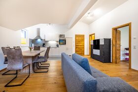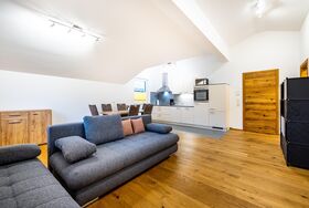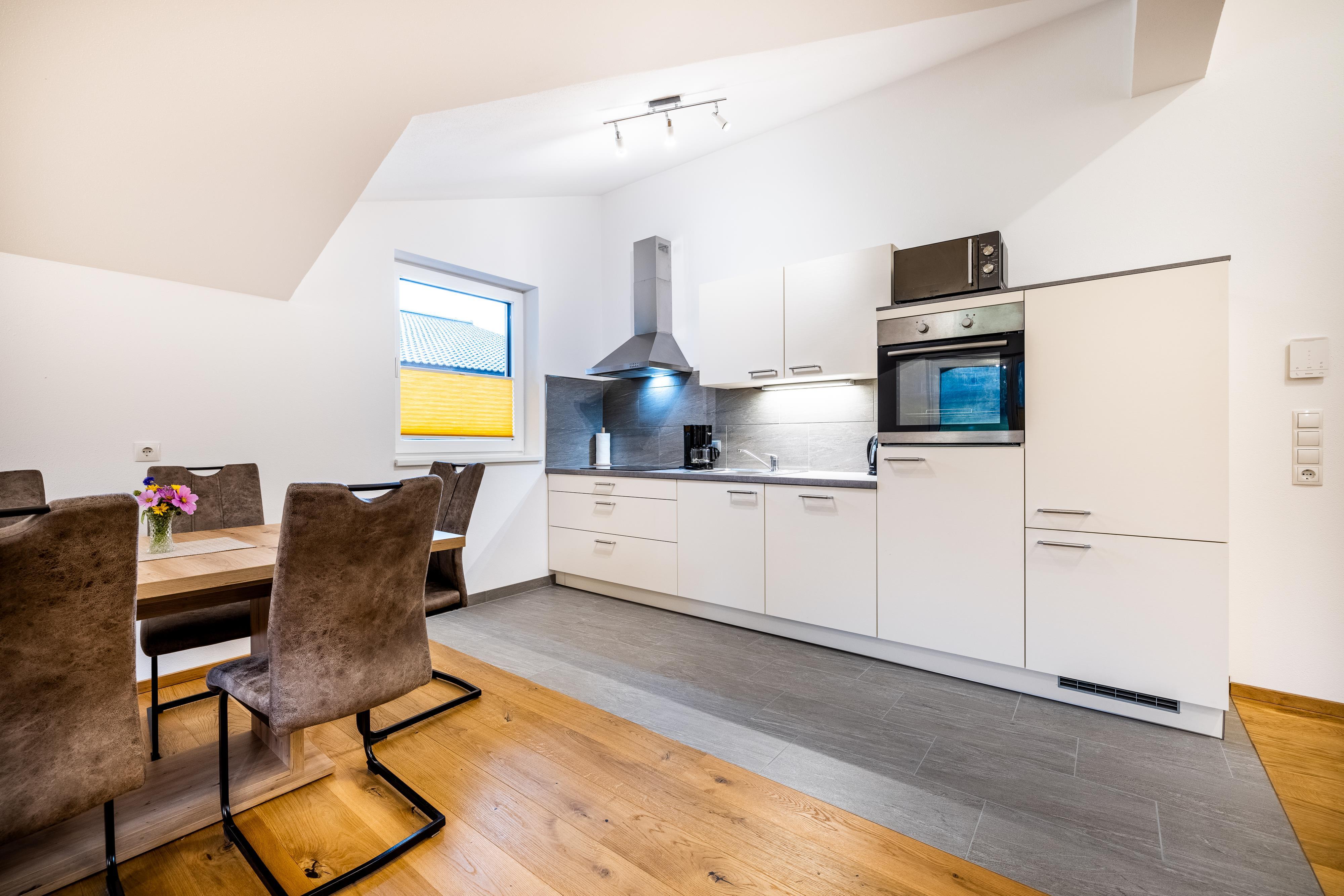 • Großzügige Wohnküche mit Essecke, gemütlicher Wohnecke und Flat-TV, W-Lan