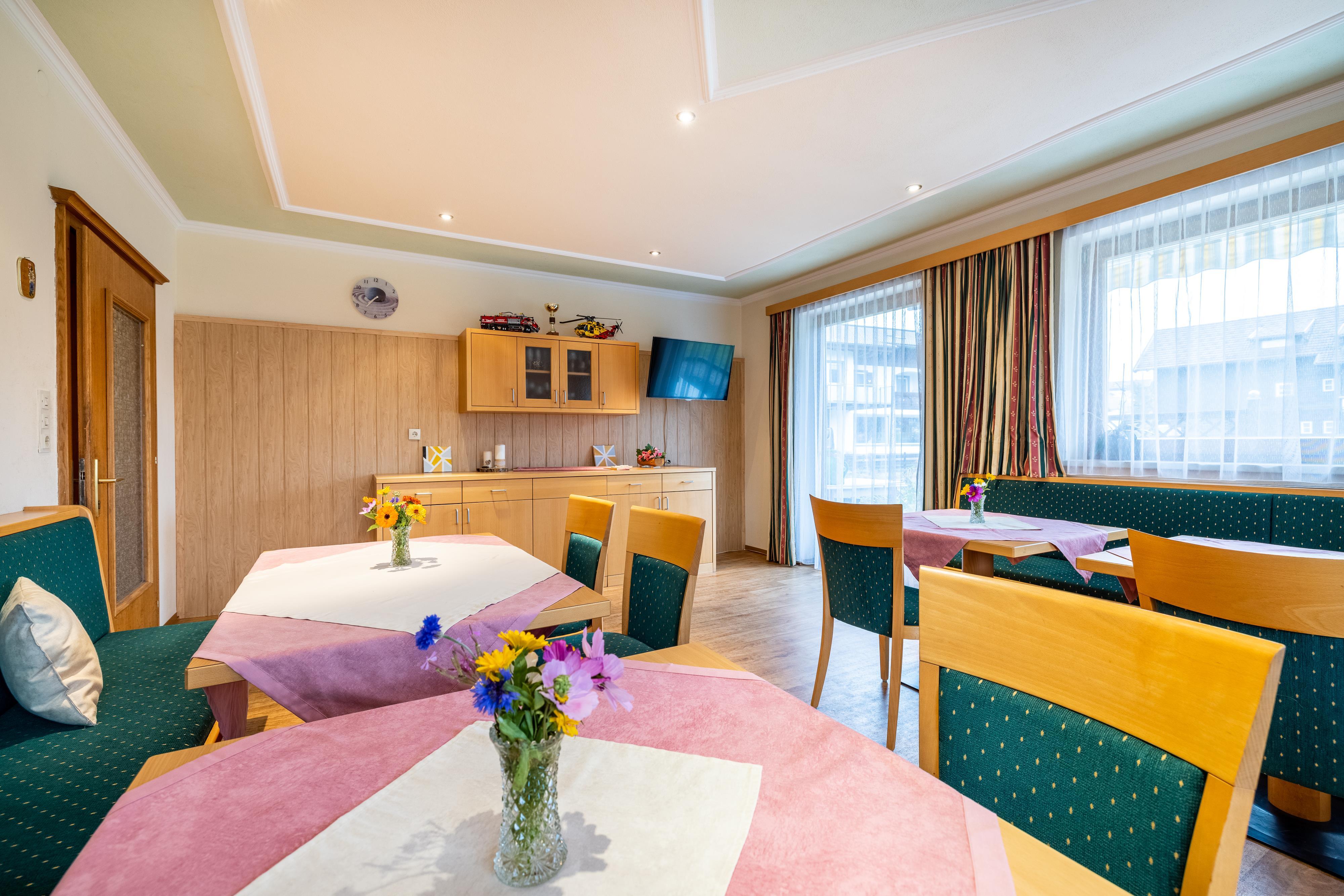 In unserem Frühstücks- und Aufenthaltsraum erwartet Sie ein Frühstücksbuffet für den perfekten Start in den Tag.