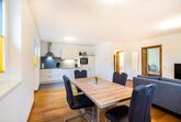 • Großzügige Wohnküche mit Essecke und gemütlicher Wohnecke und Flat-TV, W-Lan