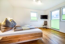 • 1 Schlafzimmer mit Doppelbett, Kasten und Flat-TV