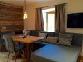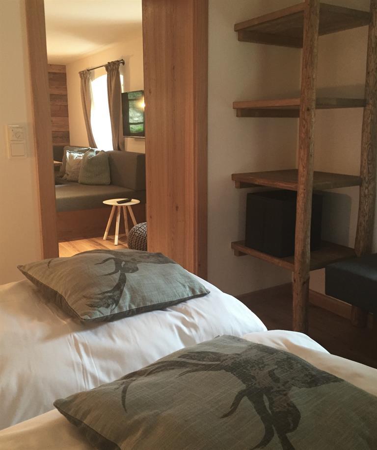 Dieses Appartement verfügt über zwei Schlafzimmer, mit Doppelbett und ein Stockbett für drei Personen. Eine Küche mit Nespresso Maschine und einer Essecke. Das Badezimmer beinhaltet eine Regendusche und ein WC.