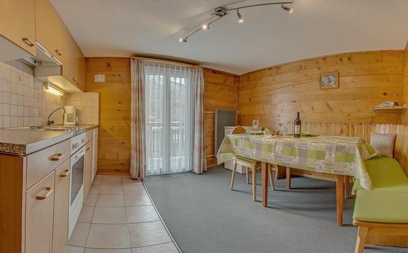 4 1/2-Zimmerwohnung (5-6 Betten,70m2), 1 Doppelschlafzimmer mit Spülbecken, 1 Wohnzimmer mit zwei Betten, TV und Radio, 2 Einzelzimmer, Bad oder Dusche, separates WC, Küche mit Geschirrspüler, Balkon, familiäre Atmosphäre. Schöne Aussicht auf Berge und Gletscher, ruhige und sonnige Lage.
