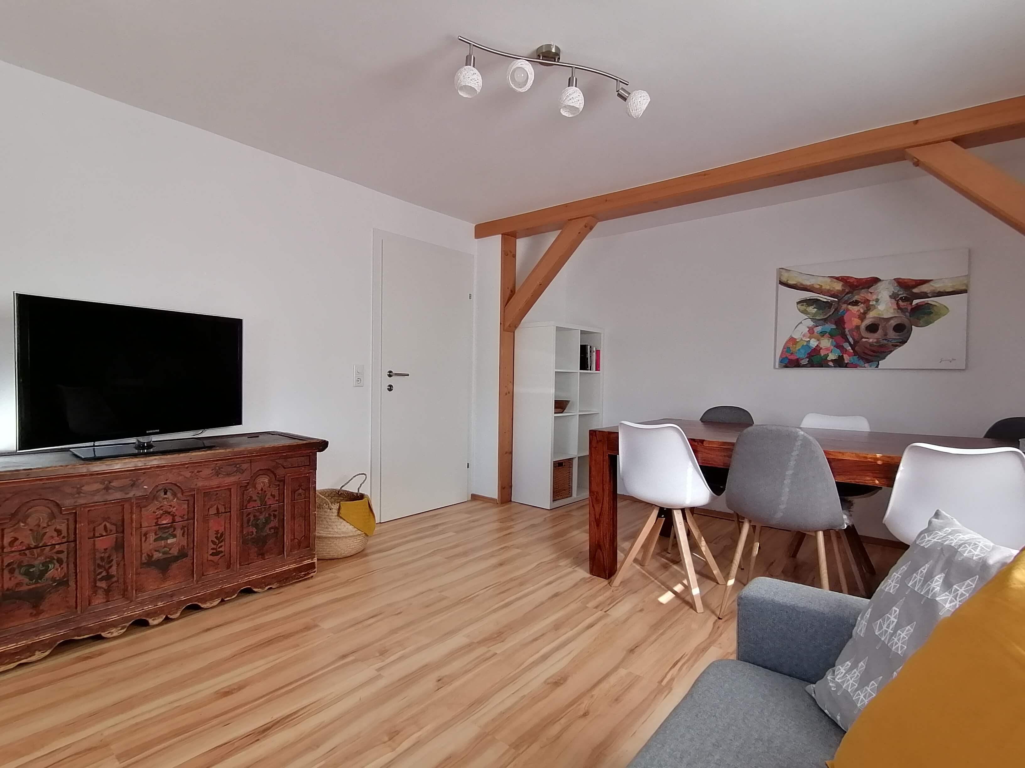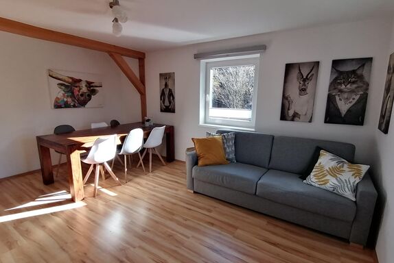 Die gemütlich, modern eingerichtete Ferienwohnung besticht nicht nur mit ihrer optimalen Lage. Nach einem Tag voller Erlebnisse in der Region Dienten am Hochkönig erwartet euch das Mountain-View Appartement mit seinem ganz besonderen Charme. Auf 100 m2 Wohnfläche bietet die Wohnung 2 Schlafzimmer mit Doppelbetten sowie ein Wohnzimmer mit hochwertiger Doppel-Schlafcouch, Essbereich und Flatscreen Fernseher. Somit ist das Apartment ideal geeignet für 4 bis 6 Personen. Zudem bietet die Wohnung eine Lounge-Area mit zusätzlichem Sitzbereich und gut ausgestatteter Küche mit Essbar. Das Highlight ist jedoch der große Außenbereich mit eigener Terrasse, zwei überdachten Balkonen und Garten mit Schaukel. Hier lässt es sich genießen!