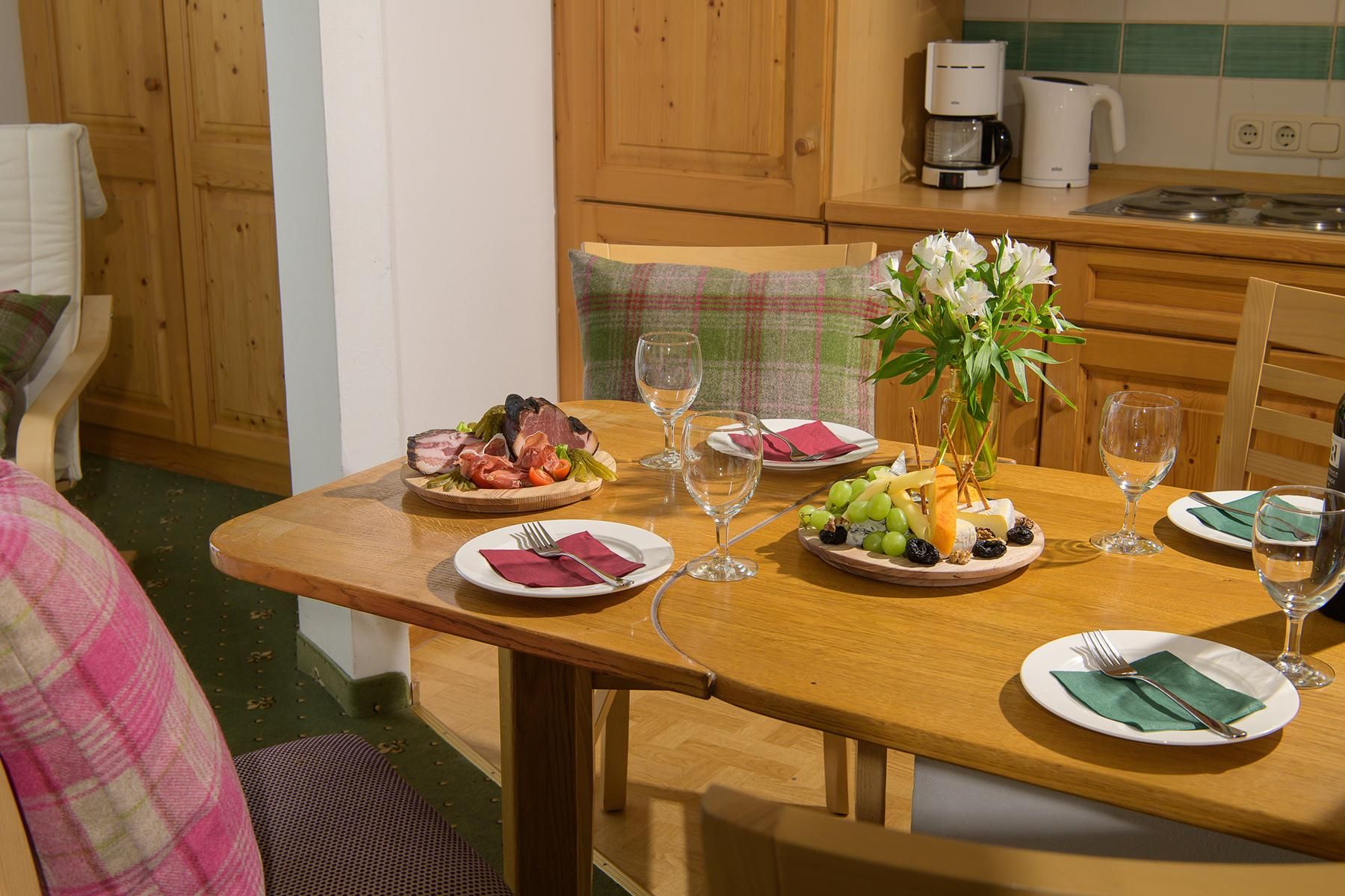 Soll die Küche einmal kalt bleiben, so verwöhnen wir Sie gerne in unserem BLÜ Restaurant mit leckeren Gerichten und ein dazu passendes Glas Wein. Auch ein abwechslungsreiches Frühstück kann im 100 Meter entferntem Hotel Blü dazu gebucht werden. Ihr Auto kann auf den hauseigenen Parkplätzen kostenlos abgestellt. Auf Wunsch gibt es auch eine Tiefgarage.