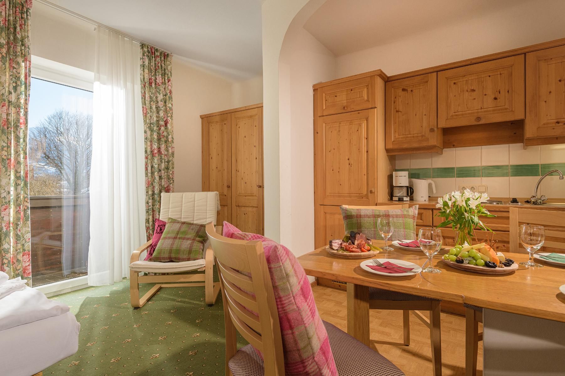Unsere ländlichen Appartements bieten mit ihren 25-60m²den idealen Ort für Ihren Familien- oder Gruppenurlaub. Fast alle Appartements verfügen über einen Wohnraum mit ausziehbarer Schlafcouch, ein Schlafzimmer mit kuscheligem Doppelbett sowie einen Südbalkon, auf dem die Mittagssonne genossen werden kann. Eine vollausgestattete Küchennische, ein Badezimmer, Föhn, WC, Fernseher und ein Radio sowie der Blick auf die Bergwelt des Salzburger Landes gehören in unseren Appartements zur Standardausstattung.