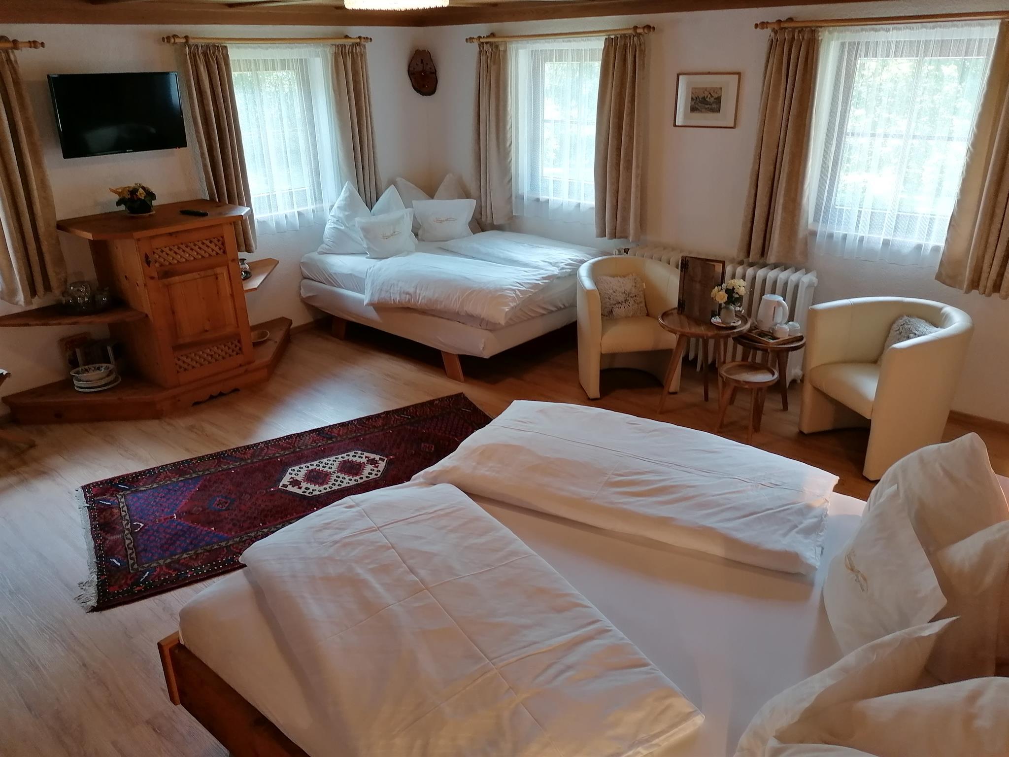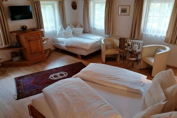 Unsere stilvoll, mit viel Liebe zum Details, eingerichteten Nichtraucher - Familienzimmer bieten Ihnen ein schönes Ambiente zum Entspannen und Genießen. Lassen Sie sich verzaubern vom Scharm und der Wärme der Bioholzmöbel die individuell vom Tischler für unsere Pension Heilbad Burgwies angefertigt wurden. Die warmen Farben geben den Räumen eine wohltuende und entspannende Atmosphäre.