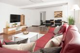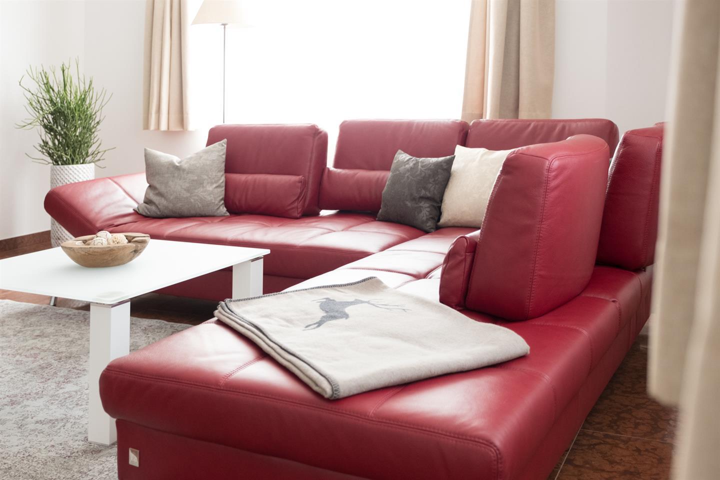 Diese luxuriöse Suite befindet sich im Parterre mit großzügigem Vorraum und bietet 2 Schlafzimmer mit Vollholz-Doppelbetten und Verbindungstür. Neben einem geräumigen Wohnzimmer mit Essbereich finden Sie eine separate, komplett ausgestattete Küche. Badezimmer mit Dusche und WC und zusätzlichem separaten WC.