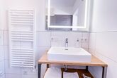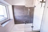 Das Badezimmer verfügt über eine Badewanne (ebenfalls mit tollem Ausblick) und Fön, das WC ist extra.