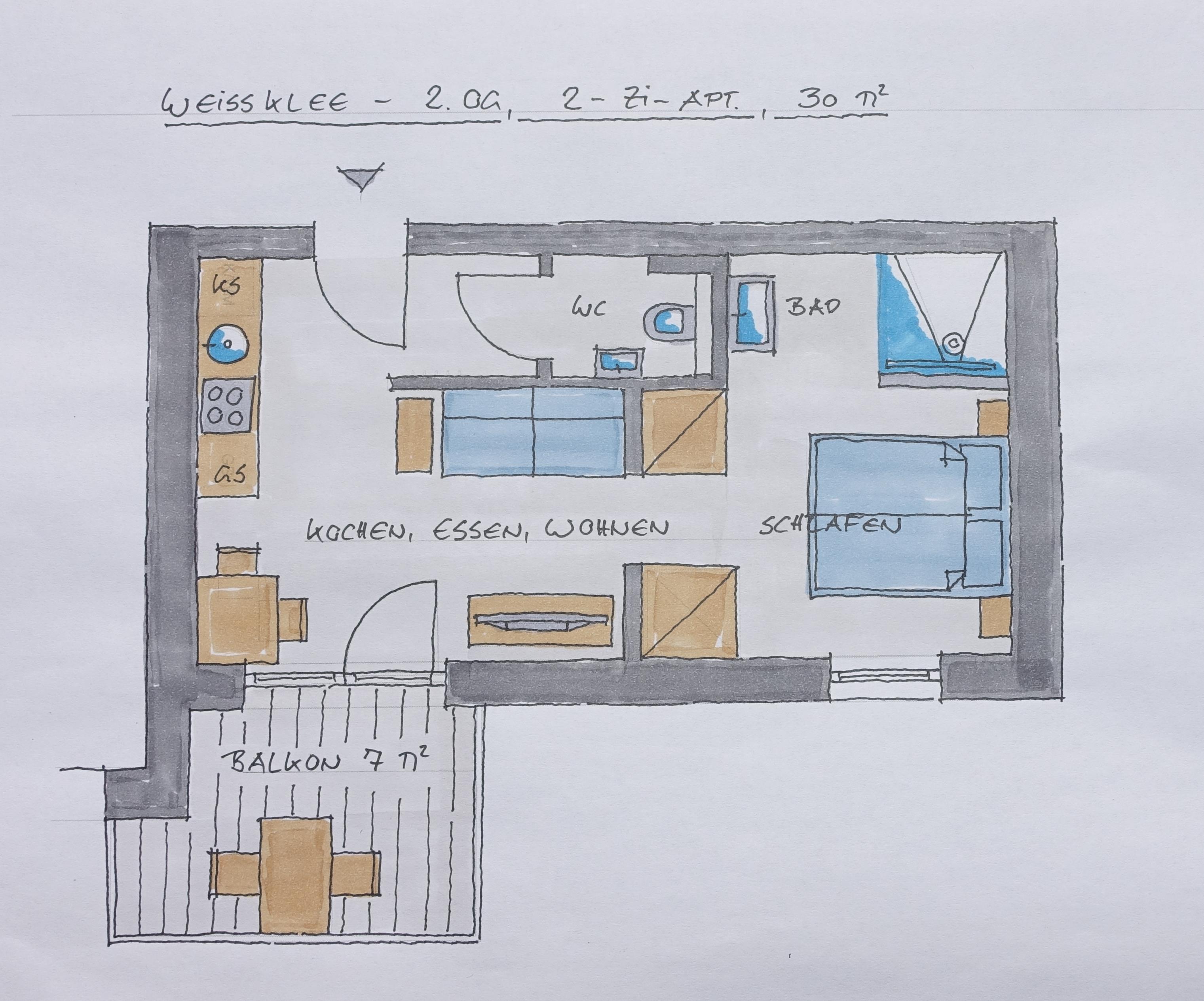 Dieses gemütliche Appartement mit Südausrichtung liegt im 2. Stock, es hat einen sonnigen, großen Balkon und Blick auf den Österreichberg. Der gemütliche Wohn-Essbereich mit vollausgestatteter Küche und Flat-screen TV lädt zum Verweilen ein.