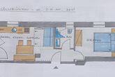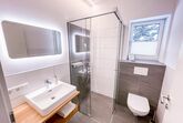 Das Badezimmer verfügt über WC, Dusche und Fön.