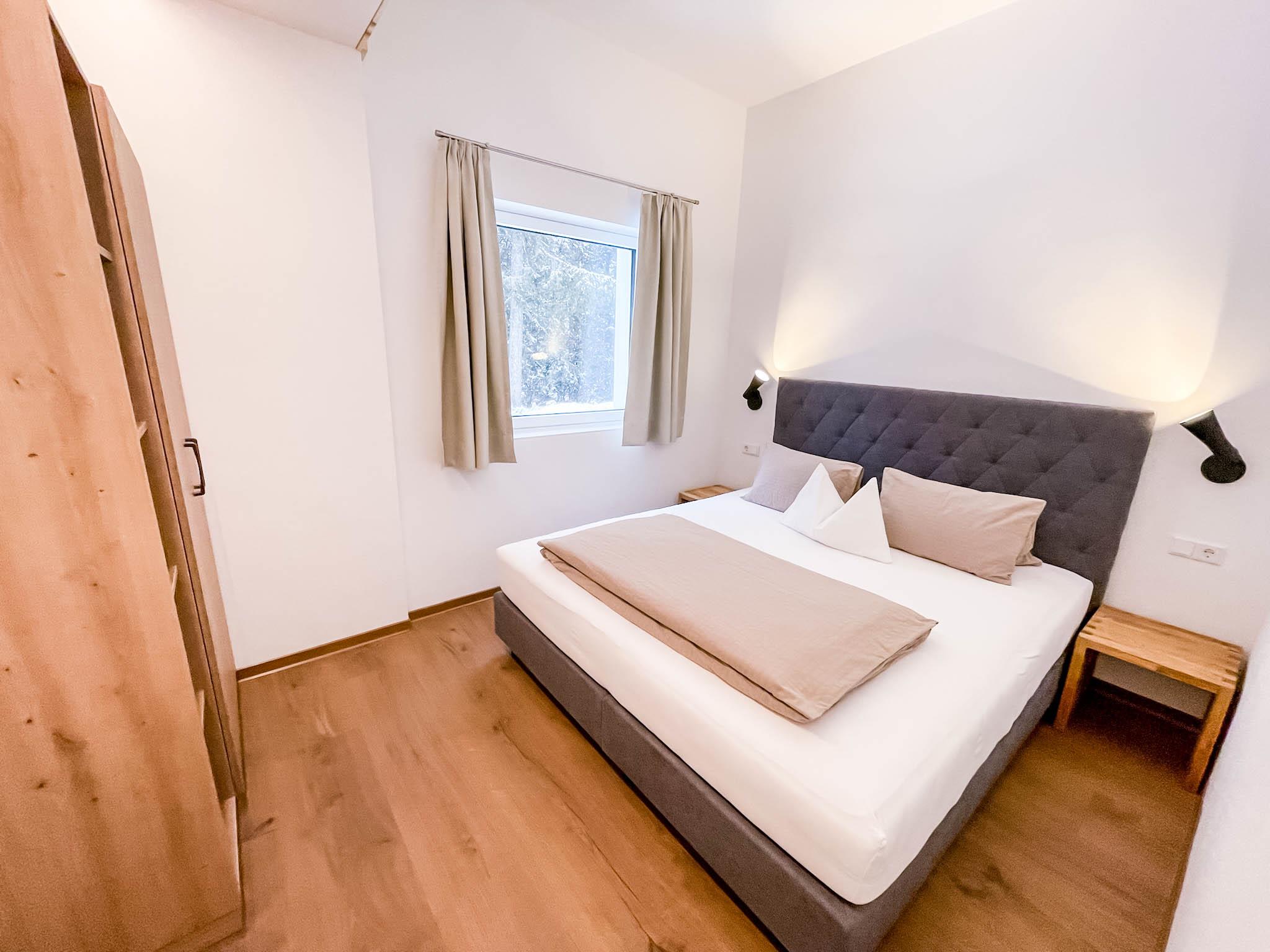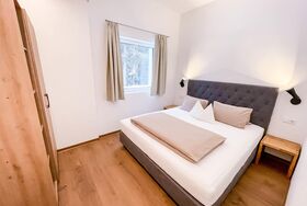Das Appartement Gänseblümchen mit 34m² im Erdgeschoss hat einen französischen Balkon mit Westausrichtung und Bergblick, von dem man wunderbar den Sonnenuntergang beobachten kann.
