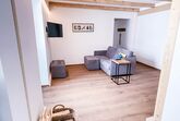 Die Wohnung hat 2 Schlafzimmer mit Boxspringbett-Doppelbetten und 1 Schlafzimmer mit Französischem Boxspringbett (1,4m x 2m), in diesem Zimmer ist auch ein geräumiger Schreibtisch integriert. Zusätzlich gibt es im Wohnbereich die Möglichkeit das Sofa als Schlafmöglichkeit zu verwenden.