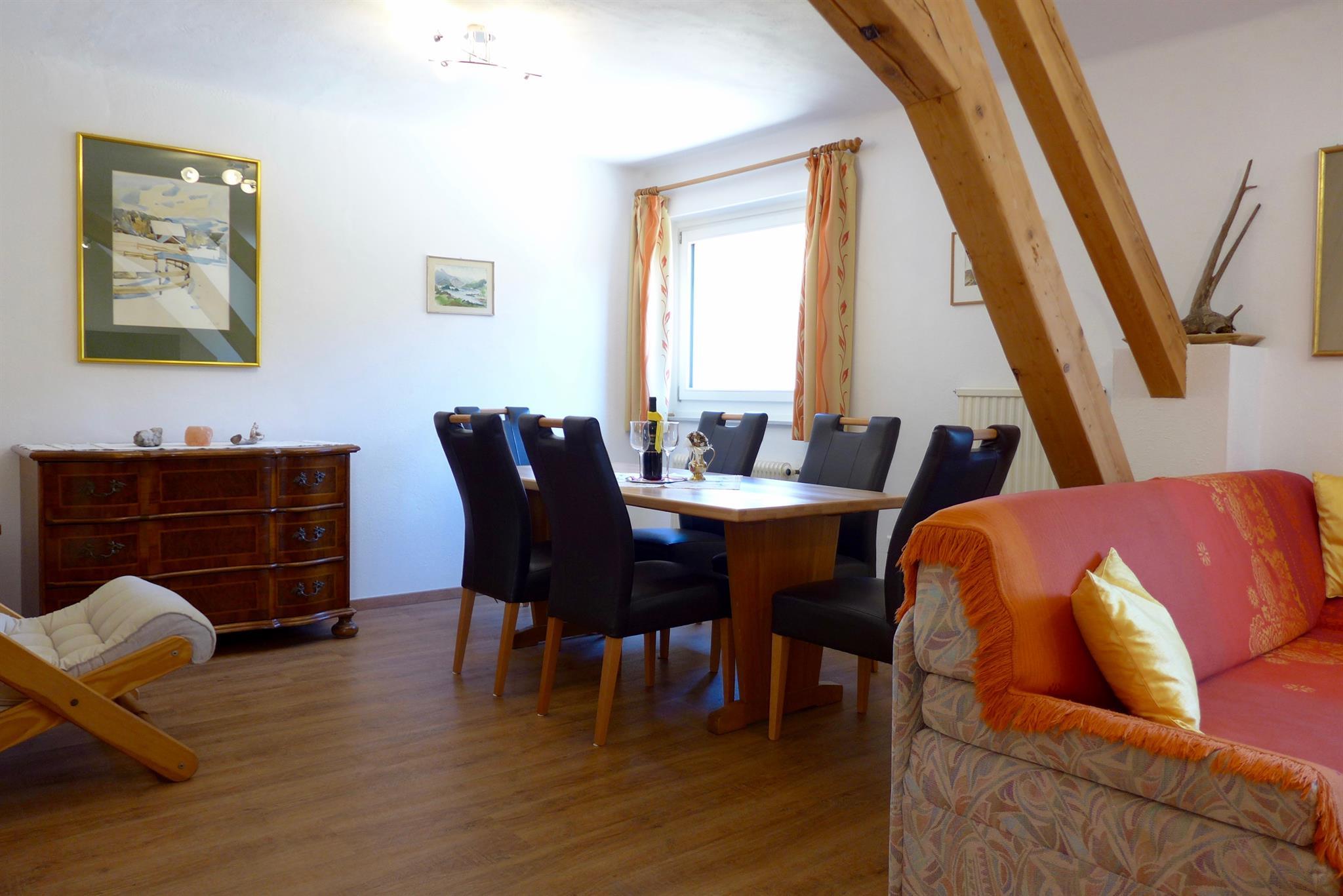 Das Apartement Bergwelt bietet mit 80m² viel Platz für 4-5 Personen mit 2 Schlafzimmer. Jedes Schlafzimmer ist mit Dusche und WC, Waschbecken mit Unterbau und großem Spiegel, Hand-und Badetücher, Haarföhn, Safe, Sitzgruppe und Bettwäsche ausgestattet. Das Wohnzimmer (Couch, Couchtisch, Flatscreen) und die Wohnküche aus Vollholz mit E-Herd, Kühlschrank, Geschirrspüler, Wasserkocher, Kaffeemaschine, Mikro und viel Geschirr und Besteck sind in einem großen Raum mit Raumteiler. Großzügiger Esstisch für 6 Personen! 2TVs! Offenes Wohnen im Landhausstil! Eichenparkettböden! Sie erreichen das Appartement bequem mit dem Lift oder die Treppe. Von jedem Fenster genießt man eine traumhafte Aussicht, einen Rundumblick über Burg, Ort, Tal und Berg.