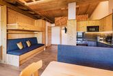Das lichtdurchflutete Appartement bietet ein ganz neues Wohngefühl mit natürlichen Materialien, wie eine Heu-Tapete aus reinen, natürlichen Stoffen aus dem Pinzgau.