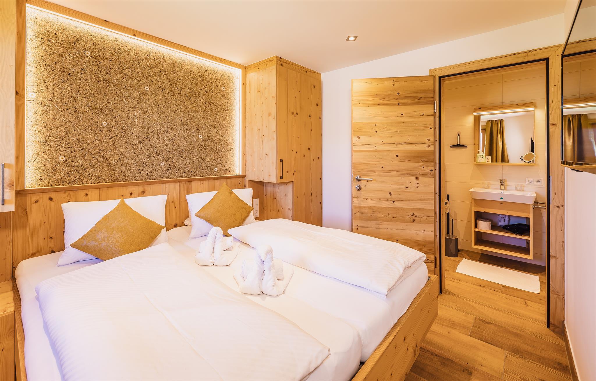 • gemütlichen Zimmern & Appartements mit Heuwänden und mit regionalen, natürlichen Materialien