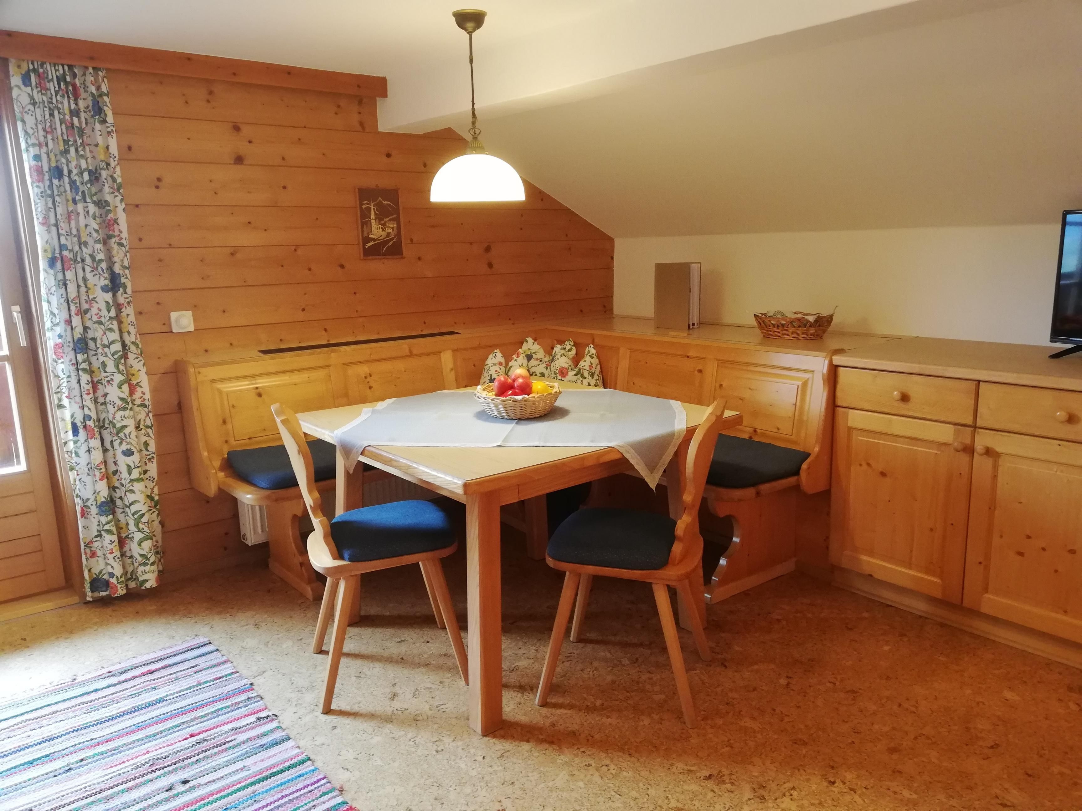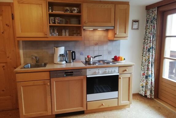 Einen besonderen Flair vermittelt unser gemütliches, großzügig ausgestattetes Appartement (ca. 65m²) mit Vorraum, Wohnküche mit Kochnische, Geschirrspüler, Backofen, E-Herd, Kühlschrank mit Gefriermöglichkeit, Kaffeemaschine, Wasserkocher, Toaster, Geschirr, Eckbank und Sitzgruppe, 2 sep. Schlafzimmern (Mehrbettzimmer), Dusche, zwei Waschtischen und 2 mal WC, südseitigem Balkon, Kabel-TV und freies W-LAN.