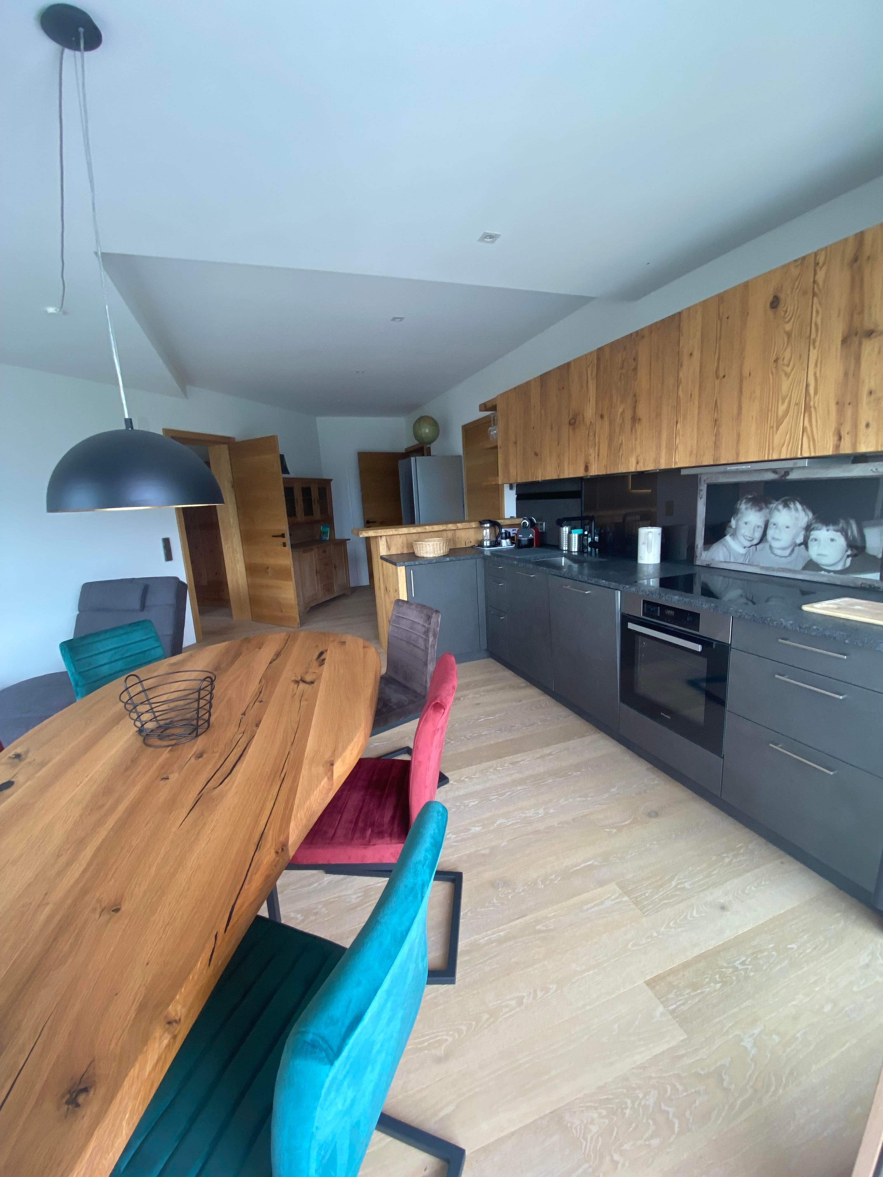 • Wohn-Esszimmer mit integrierter, hochwertig ausgestatteter Küche
