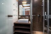 Das exquisite Penthouse liegt direkt unter dem Holzdach des Gebäudes und bietet einen Balkon mit herrlichem Blick. Der geschmackvoll gestaltete Wohnbereich ist mit einem Kamin und LCD Flat-TV ausgestattet. Das Penthouse verfügt über WLAN. Die offene Küche mit Kochinsel bietet viel Komfort und ist neben Markengeräten auch noch mit Wasserkocher, Filterkaffee- und Espressomaschine, Toaster, Küchenutensilien und Geschirr ausgestattet. Die 2 Schlafräume mit je einem King Size-Boxspringbett verfügen alle über Flat-TVs. In einem der 2 Schlafzimmer befindet sich ein zusätzliches Stockbett. Außerdem gibt es mindestens 1 hochwertiges Badezimmer mit Badewanne oder Dusche und ein Gast-WC im Penthouse.