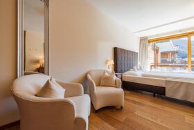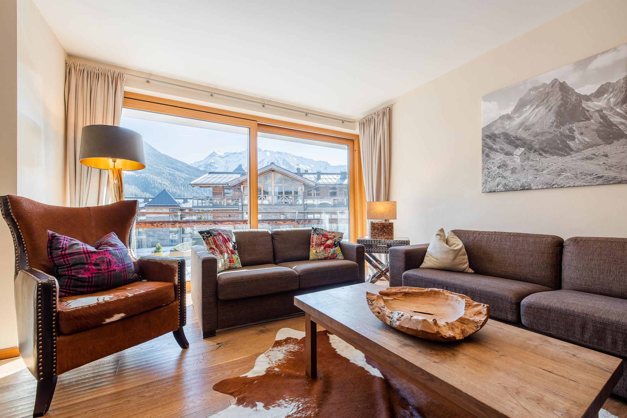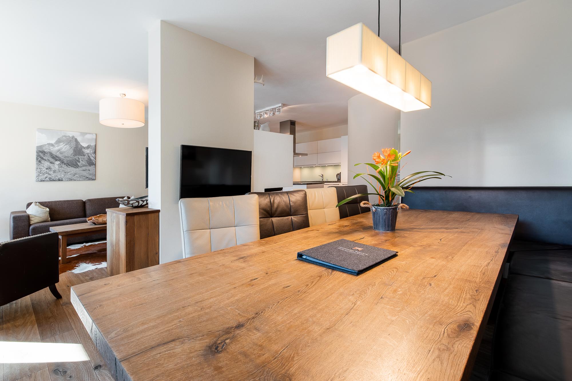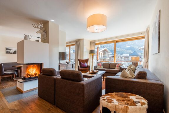 Das großzügige Apartment bietet einen Balkon mit Blick auf den Nationalpark Hohe Tauern. Das geschmackvolle Wohnzimmer ist mit einer Schlafcouch für 2 Personen (auf Anfrage; EUR 15,00 pro Person/Tag; Bezahlung vor Ort), LCD Flat-TVmit einem Kamin ausgestattet. Die hochwertige, offene Küche mit Kochinsel bietet viel Komfort und ist neben Markengeräten auch noch mit Wasserkocher, Filterkaffe- und Espressomaschine, Toaster, Küchenutensilien und Geschirr ausgestattet. Die 4 Schlafzimmer verfügen über je ein King Size-Boxspringbett und Flat-TVs. In einem der vier Schlafzimmer befindet sich ein zusätzliches Stockbett. Es gibt drei hochwertige Badezimmer wovon sich in einem eine Badewanne befindet. Gast-WC im Apartment
