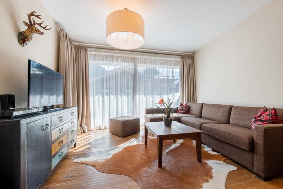 Das großzügige und hochwertige Apartement bietet eine Terrasse oder einen Balkon mit herrlichem Blick auf den Nationalpark Hohe Tauern. Das geschmackvolle und gemütliche Wohnzimmer ist teilweise mit einer Schlafcouch für 2 Personen (auf Anfrage; EUR 15,00 pro Person/Tag; Bezahlung vor Ort), LCD Flat-TV ausgestattet. Das Apartement verfügt über kostenloses WLAN. Die hochwertige, offene Küche bietet viel Komfort und ist neben Markengeräten auch noch mit Wasserkocher, Filterkaffee- und Espressomaschine, Toaster, Küchenutensilien und Geschirr ausgestattet. Die 2 Schlafzimmer verfügen über je ein King Size-Boxspringbett, Flat-TVs . Es gibt mindestens ein hochwertiges Badezimmer mit Badewanne und ein Gast-WC im Apartment.