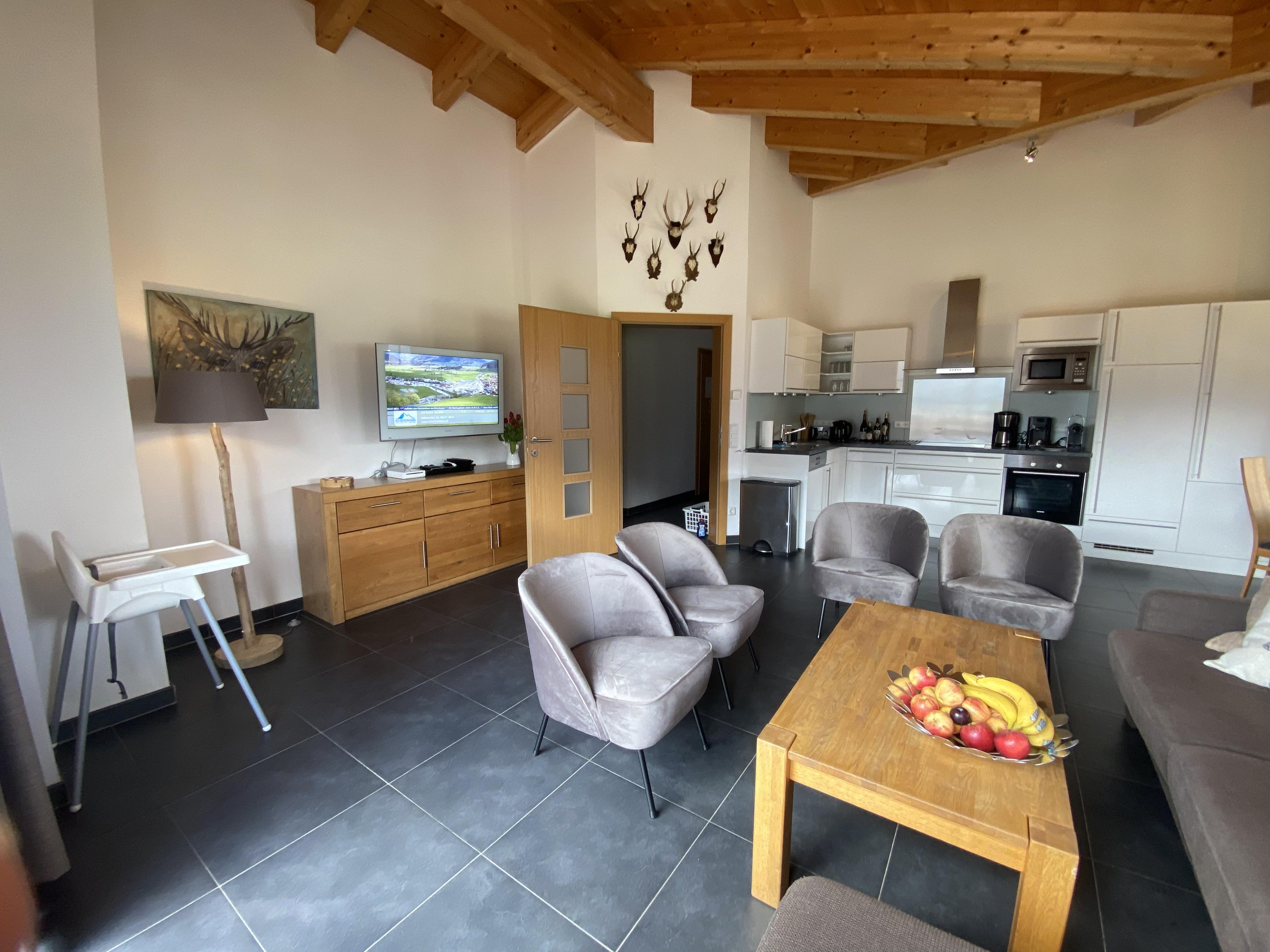 Hoher Luxusstandard, Fußbodenheizung, geräumiges Wohnzimmer, großer Esszimmertisch, Sony OLED, Sonos, Apple TV, Netflix, Breitband WiFi, Blu-ray DVD