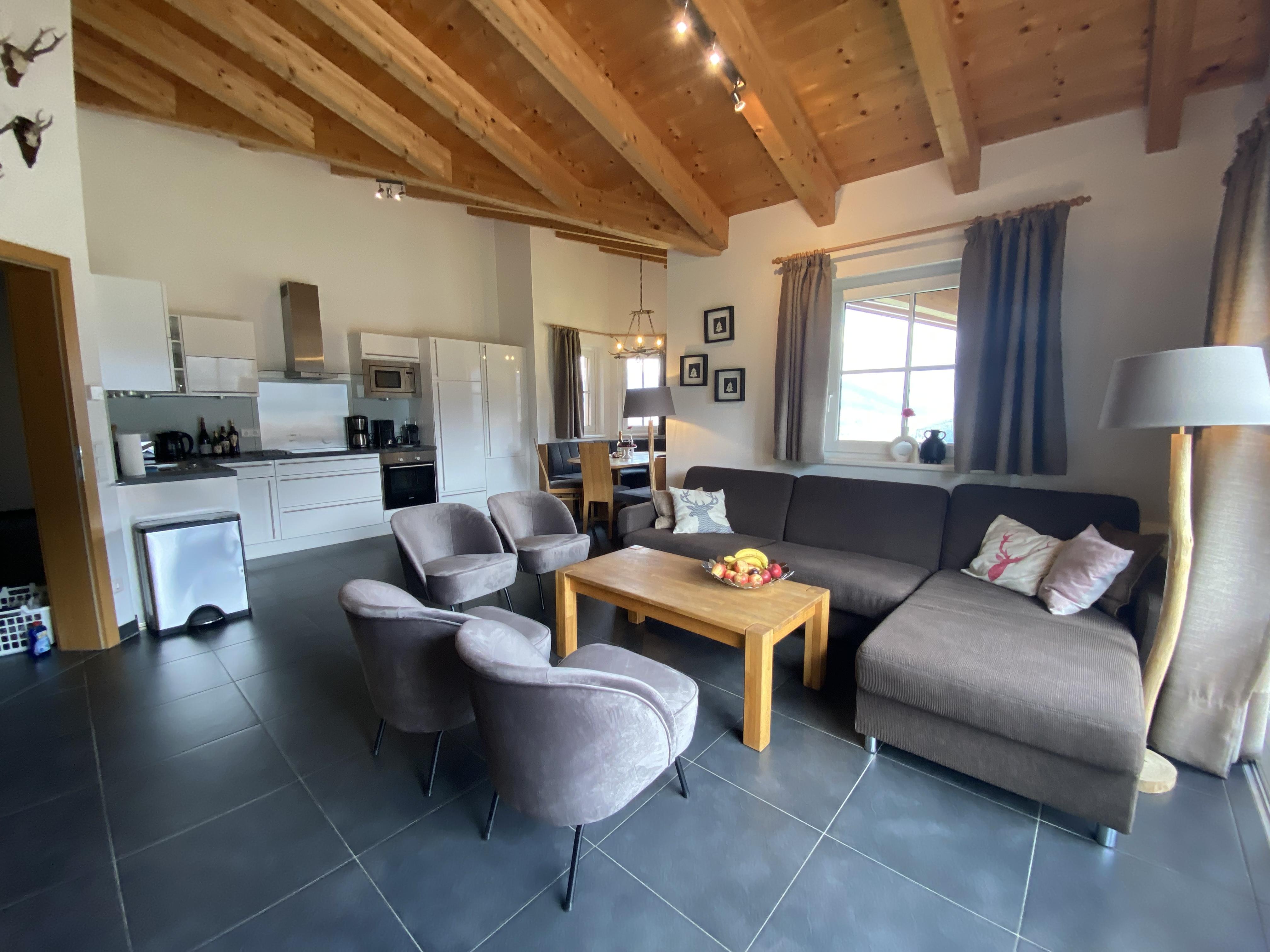 Treten Sie ein in das stilvoll und **luxuriös ausgestattete Chalet**, wo die Wellness-Oasen der Natur auf moderne Annehmlichkeiten treffen. Genießen Sie die atemberaubenden **Blick auf die zauberhafte Berglandschaft**, während Sie sich in der **eigenen Küche** Ihren Lieblingsgerichten widmen.