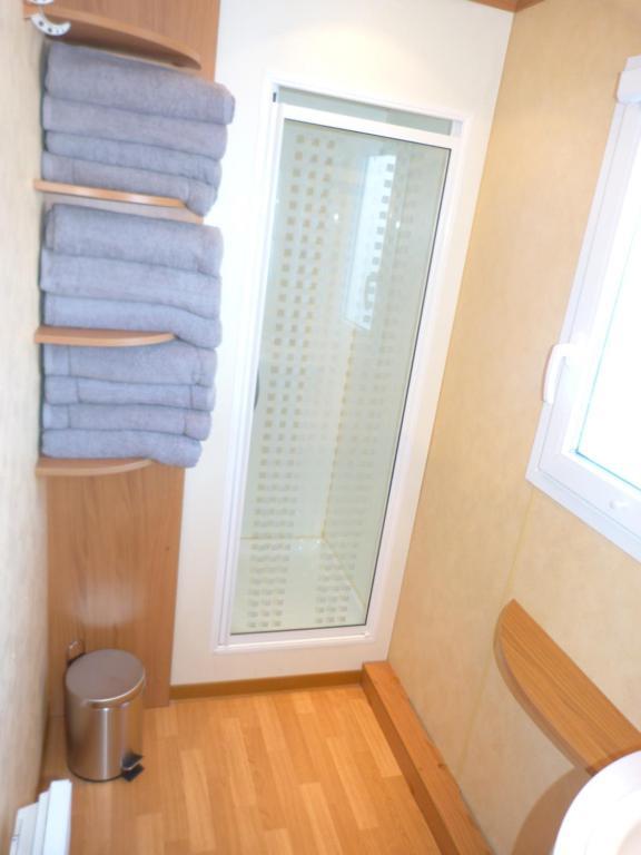 Die Unterkunft befindet sich direkt an einem kleinen See und verfügt über eine Terrasse, eine voll ausgesteattete Küche mit Geschirrspüler, Sitzbereich, Flachbild TV, eine Waschmaschine und ein eigenes Bad mit einer Dusche und einem Haartrockner. Das Mobilheim bietet Ihnen kostenlose Fahrräder und WLAN. Ein Kühlschrank, ein Backofen, ein Kochfeld, ein Wasserkocher und eine Kaffeemaschine sind ebenfalls vorhanden.