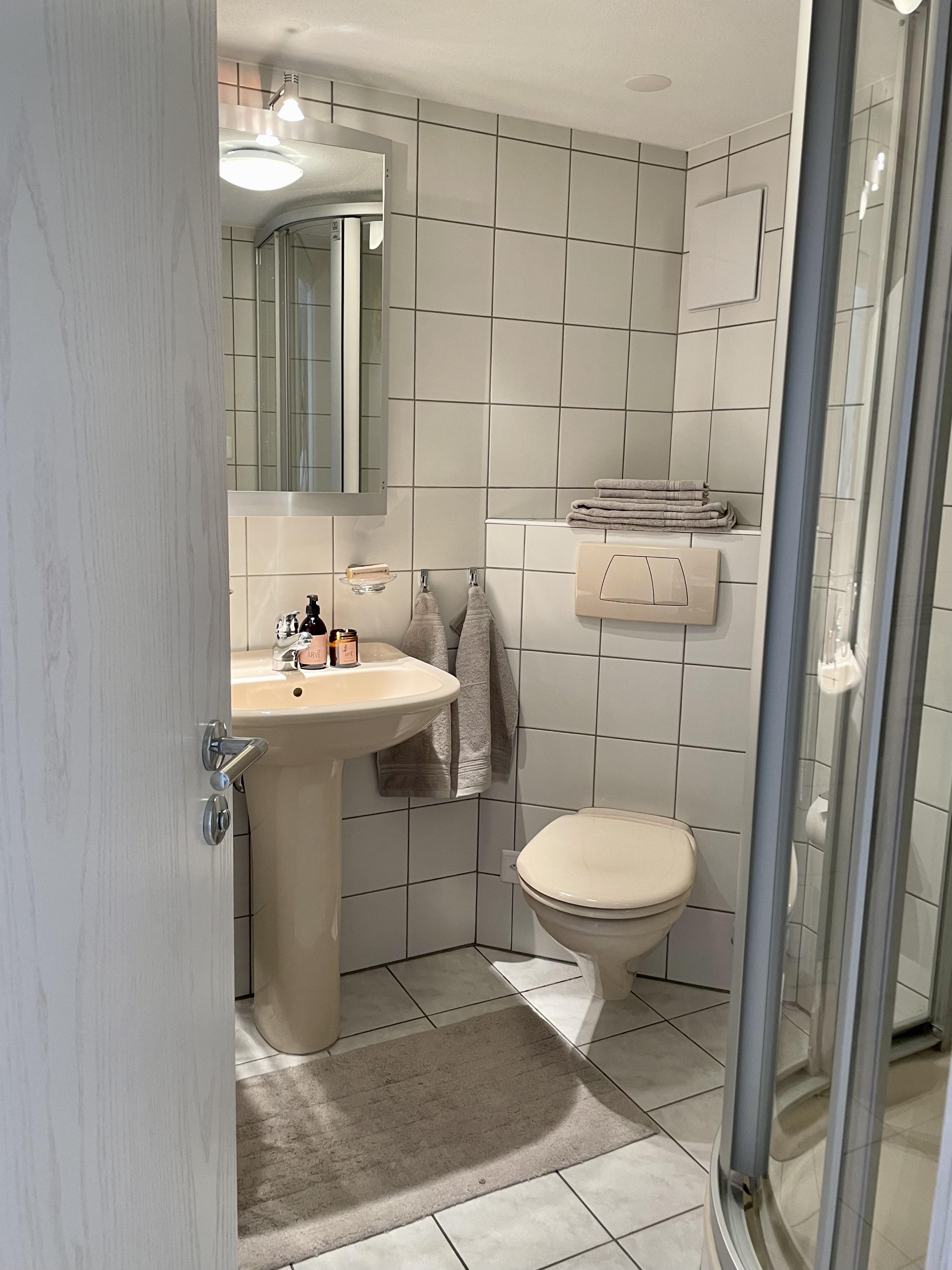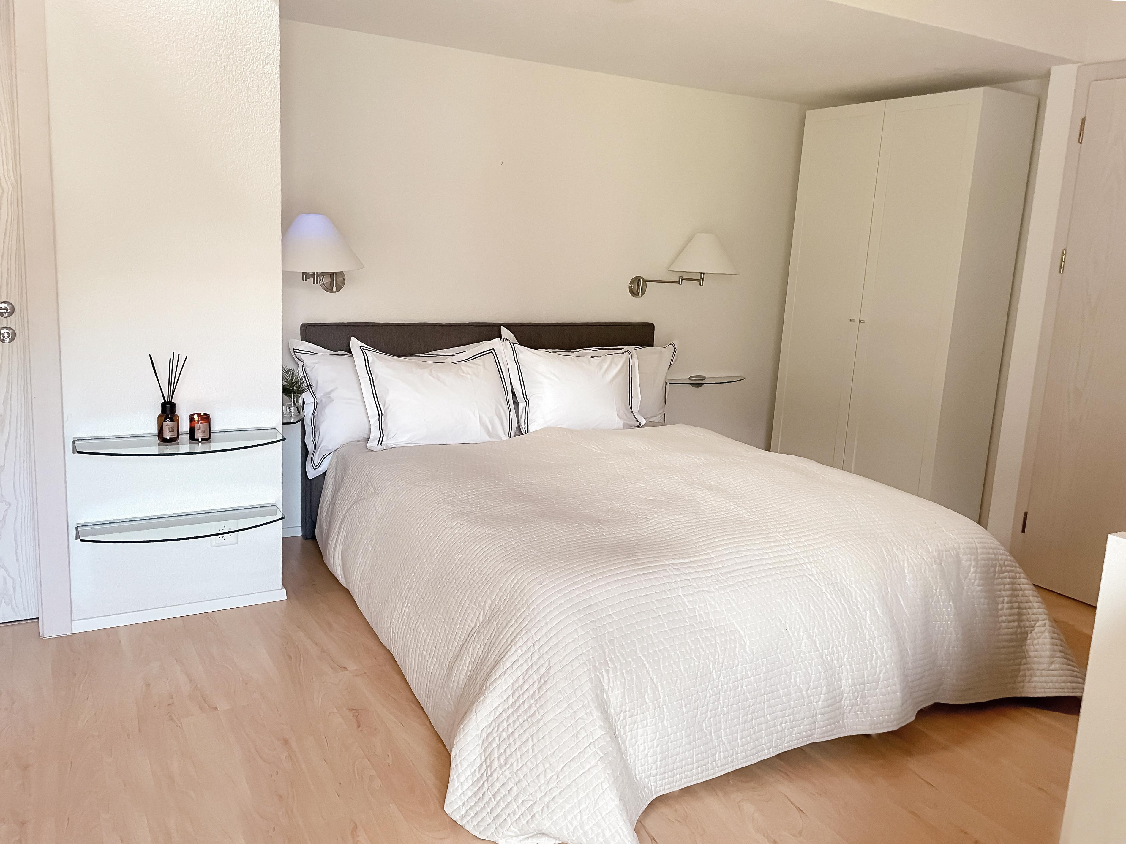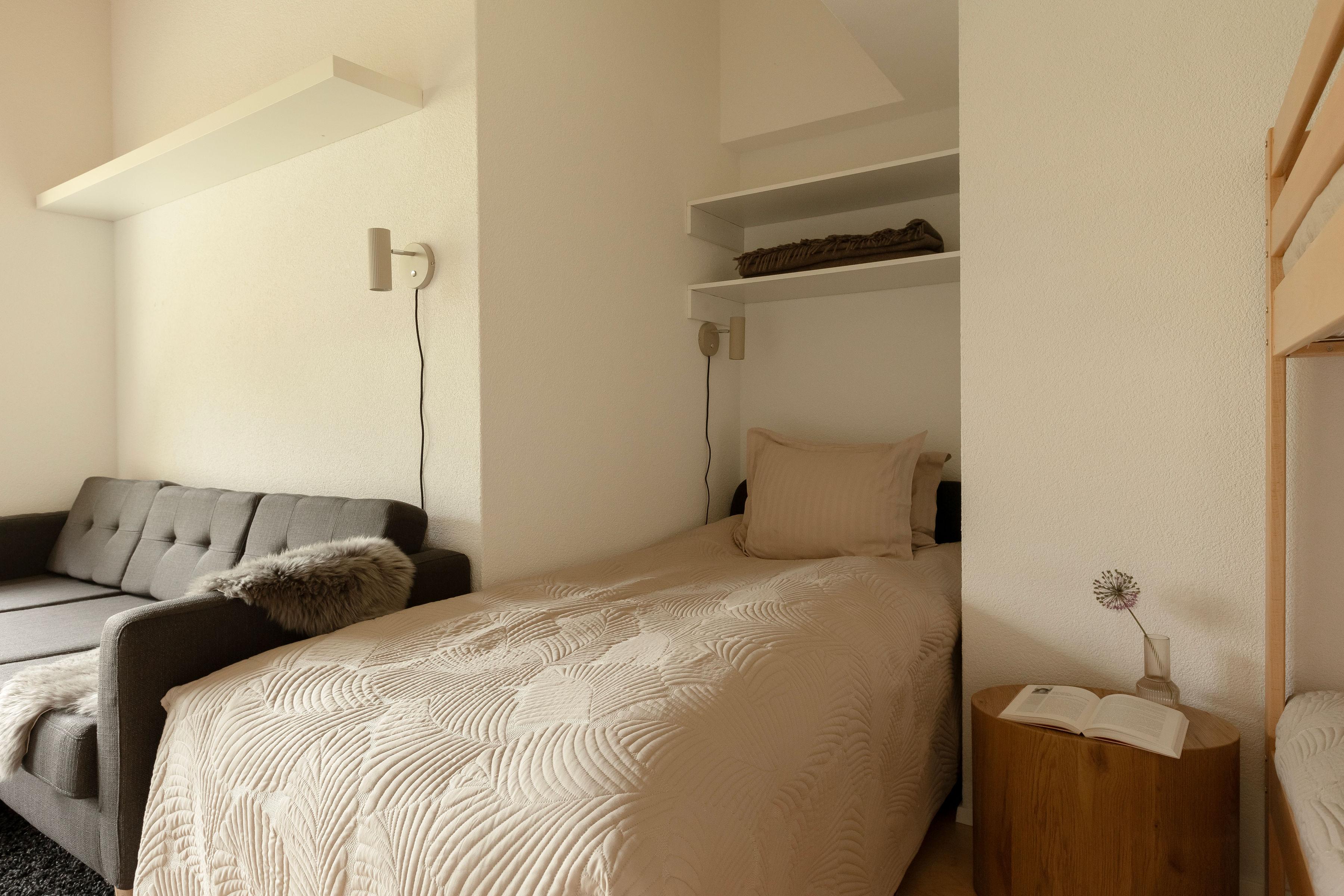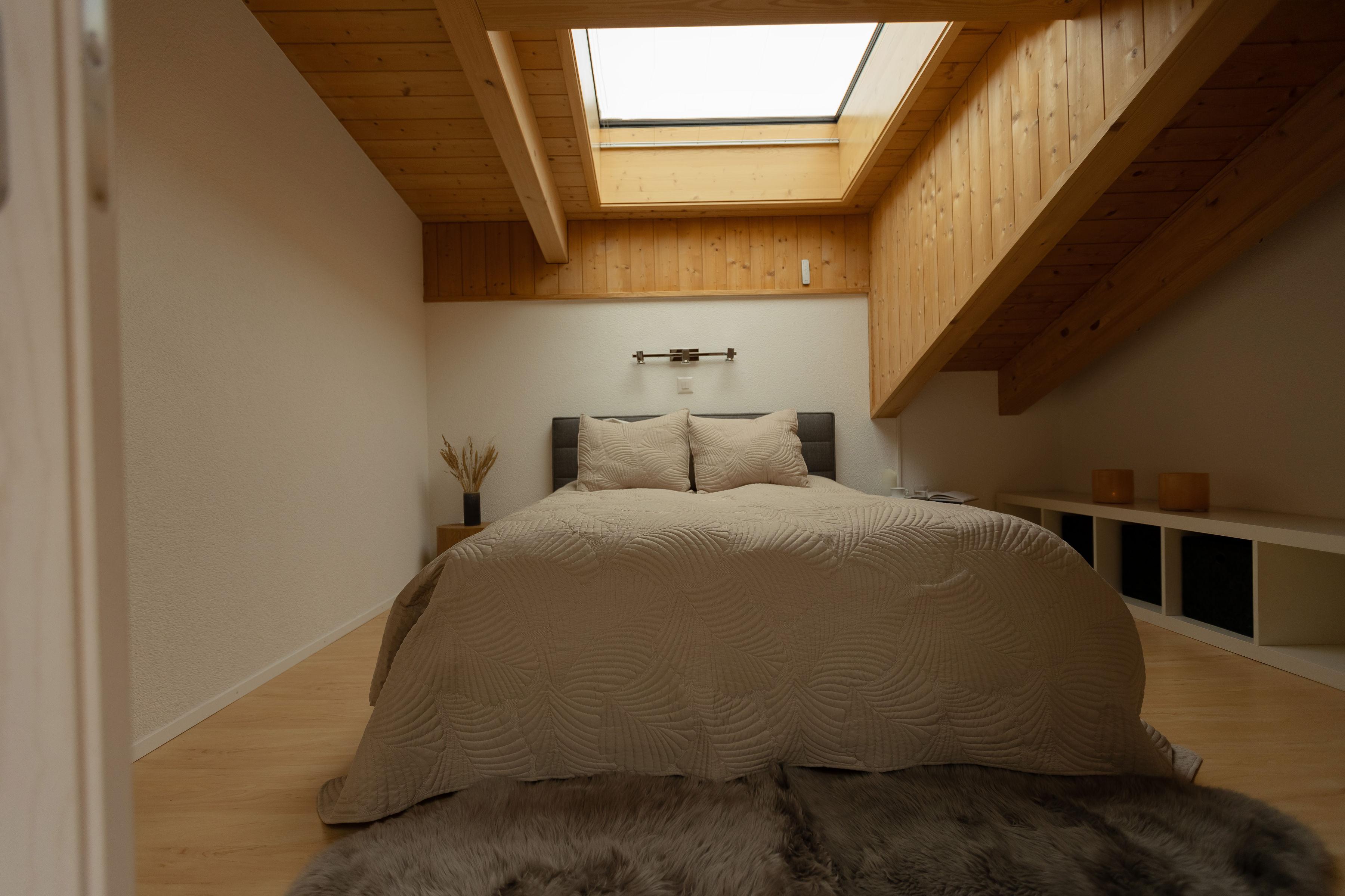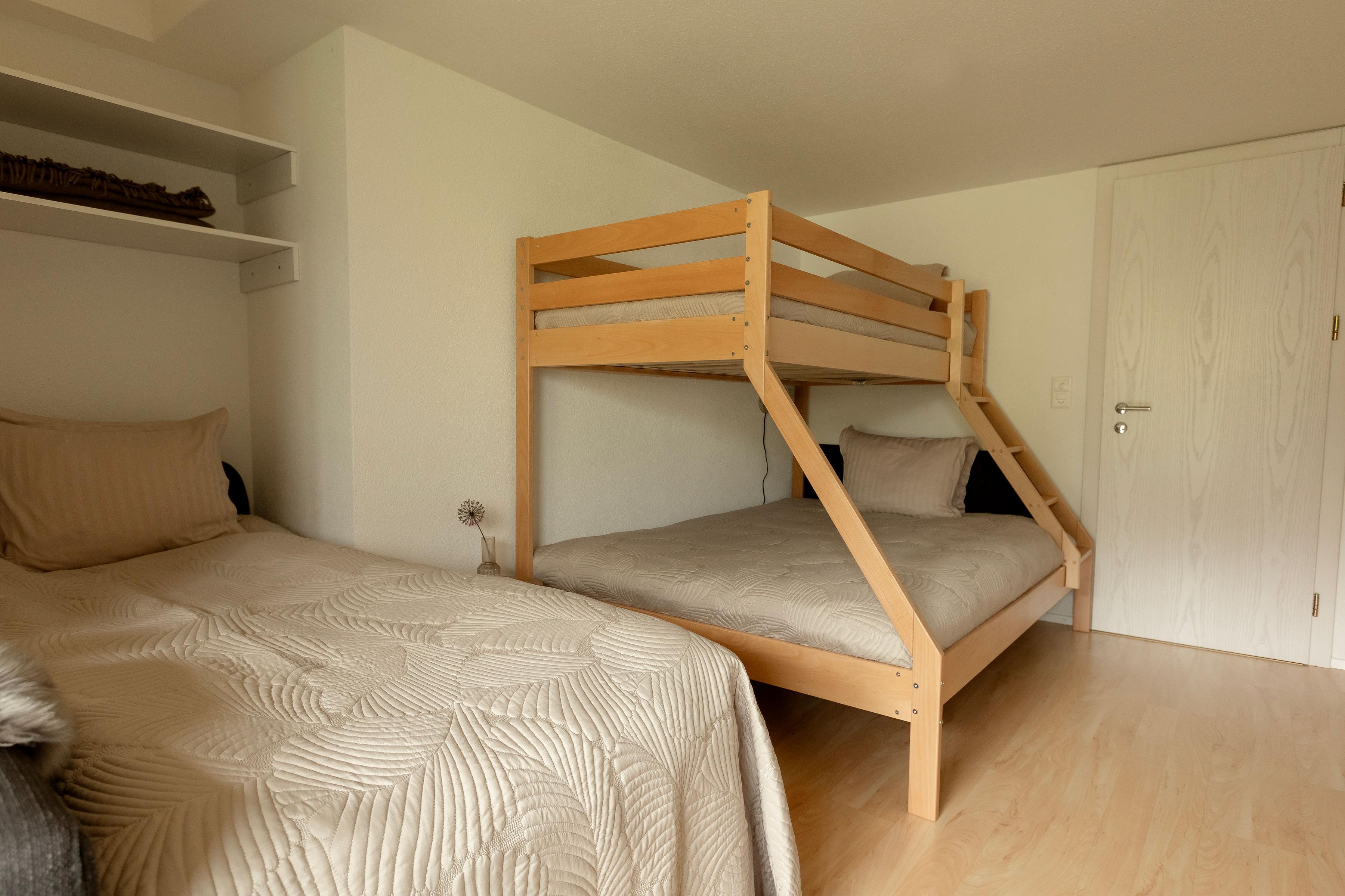Das Penthouse-Apartment ist eine Maisonette-Wohnung im fünften Stock und mit dem Aufzug erreichbar. Geräumige Zimmer in modernem, hellem Design. Große Fenster. Untere Etage – ein Doppelzimmer mit eigenem Bad (Badezimmer mit Dusche und Badewanne) mit einem Kingsize-Bett, ein Dreibettzimmer mit einem Etagenbett und einem Einzelbett. Separates Badezimmer mit Dusche, WC und kombinierter Waschmaschine/Trockner. Geräumiges Ess- und Wohnzimmer mit Herd und gut ausgestatteter Küche. Obergeschoss - ein Doppelzimmer mit Queensize-Bett und separatem WC, TV-Ecke mit Apple TV und Kabel-TV. Keller - Skiraum zur Nutzung durch die Gäste. Skidepots auch direkt an der Piste vorhanden