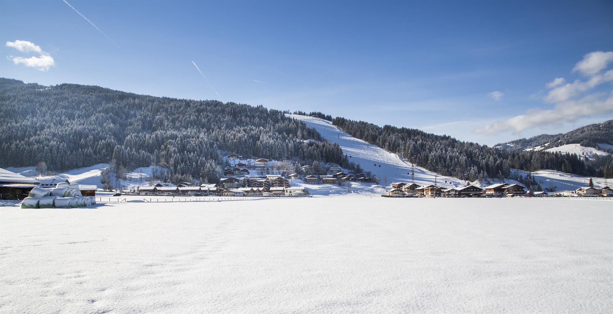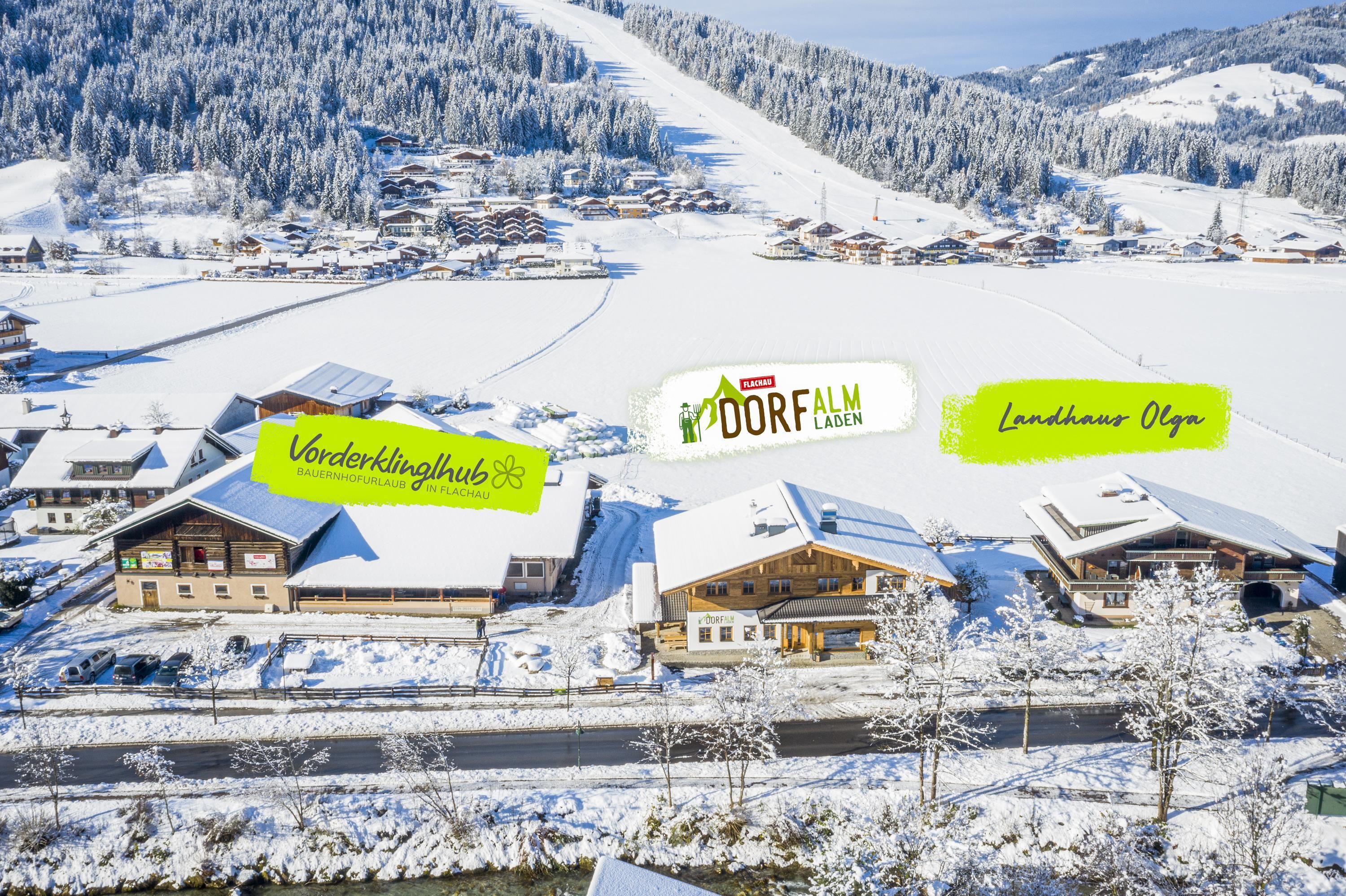 Die Langlaufloipe führt direkt am Hof vorbei. Neben dem Bauernhof befindet sich unser Restaurant Dorfalm mit Hofladen, sowie ein Milch- bzw. Warenautomat.