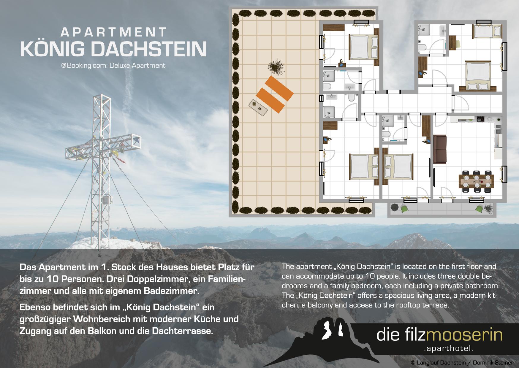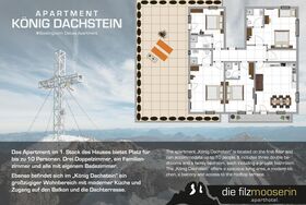 Ebenso befindet sich im König Dachstein ein großzügiger Wohnbereich mit moderner Küche und direktem Zugang auf dem Balkon und die Dachterrasse.