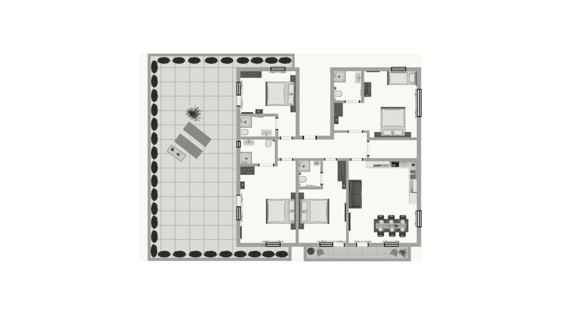 Das Apartment im 1. Stock des Hauses bietet Platz für bis zu 10 Personen. Drei Doppelzimmer, ein Familienzimmer und alle mit eigenem Badezimmer.