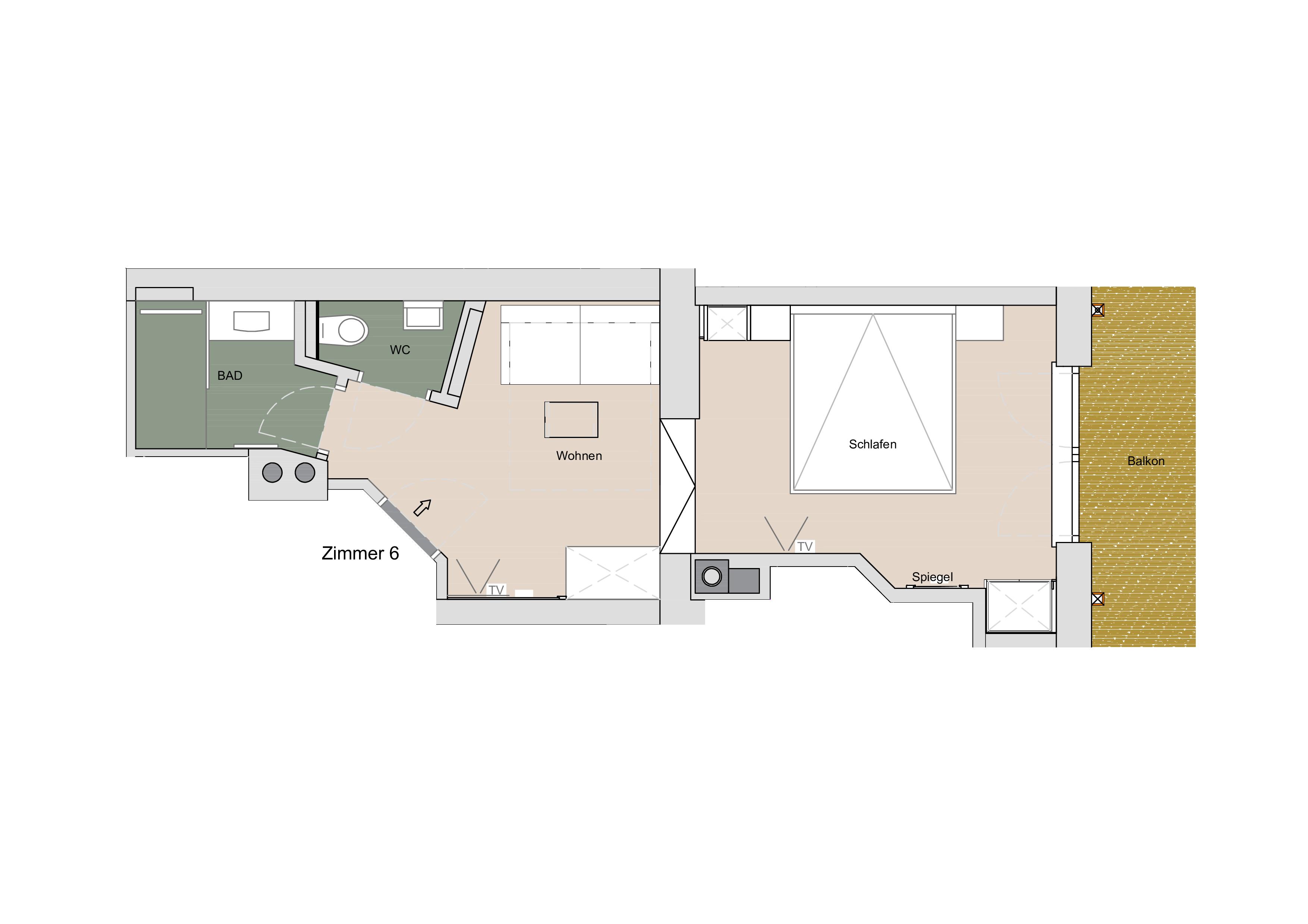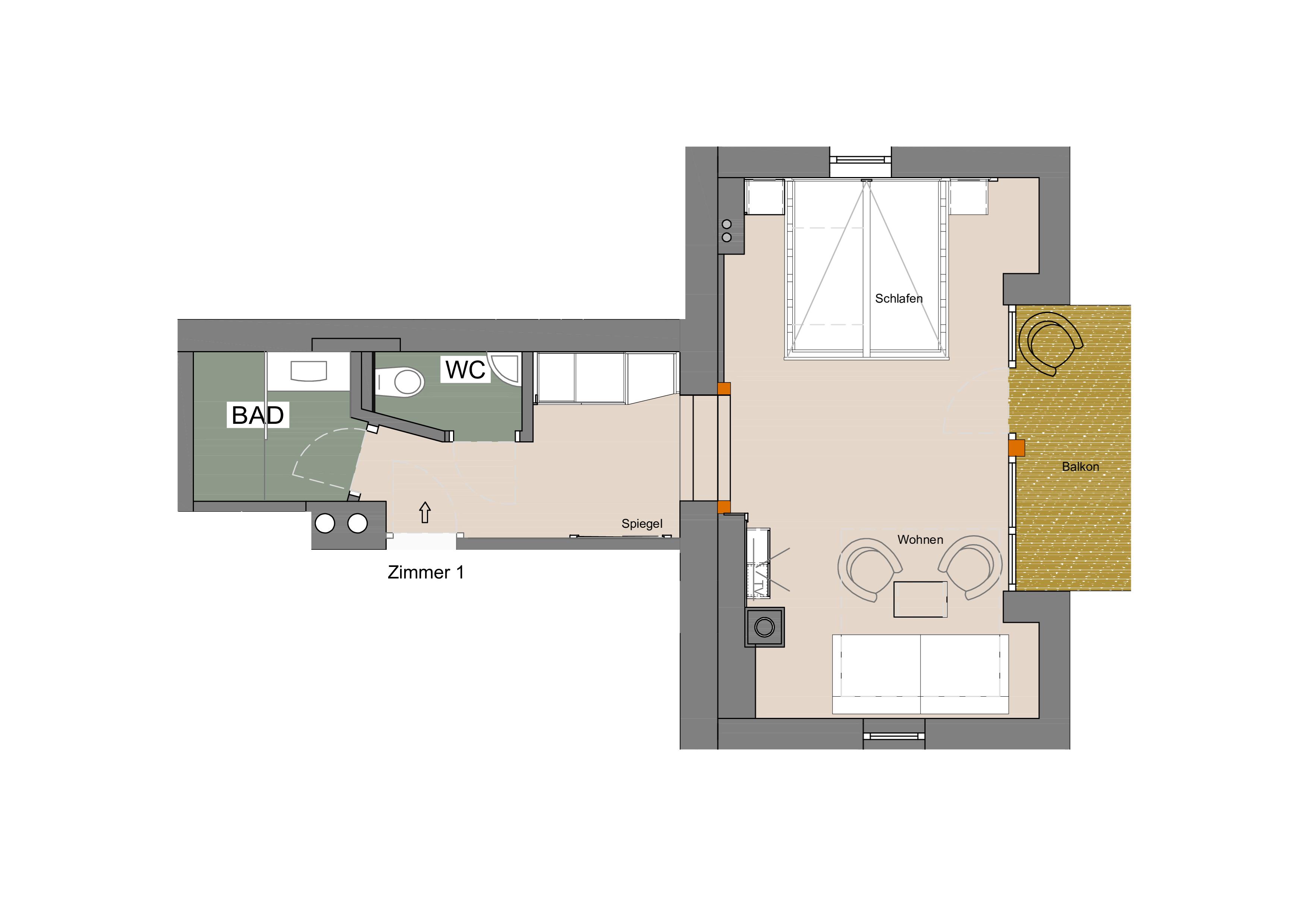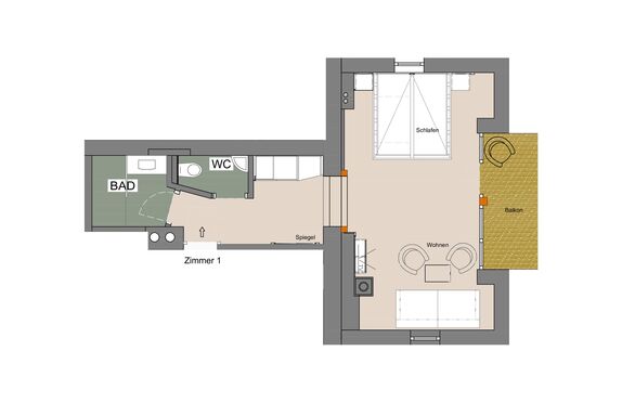 Mit Schlafcouch für 3 bzw. 4. Person möglich.