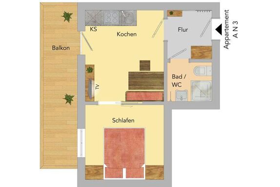 Unser Appartement N3 bietet die ideale Möglichkeit einen unvergesslichen Urlaub zu zweit zu verbringen. Es bietet die perfekte Größe für zwei Personen - 1 geräumiges, gemütliches Schlafzimmer, ein sehr einladender Wohnraum mit Couch und eine Sitzecke, die dazu einlädt dort gemeinsam Zeit zu verbringen. Weiter bietet das Appartement einen Küchenblock, der einem/r alles bietet, das benötigt wird.Das Schlafzimmer ist separat, also getrennt vom Wohnbereich.