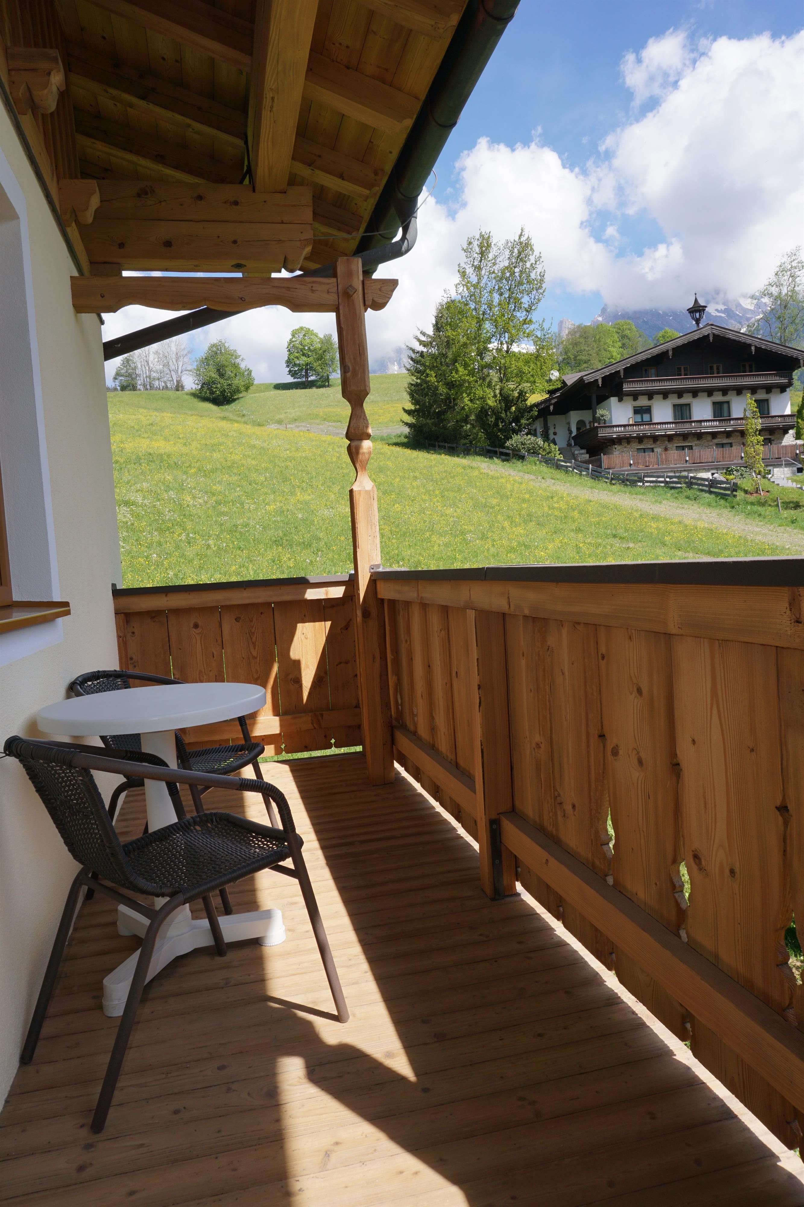 Der Balkon (mit Balkonmöbeln) bietet wieder eine Urlaubs-Aussicht, bei der man nicht anders kann als die Zeit zu genießen und zu entspannen!