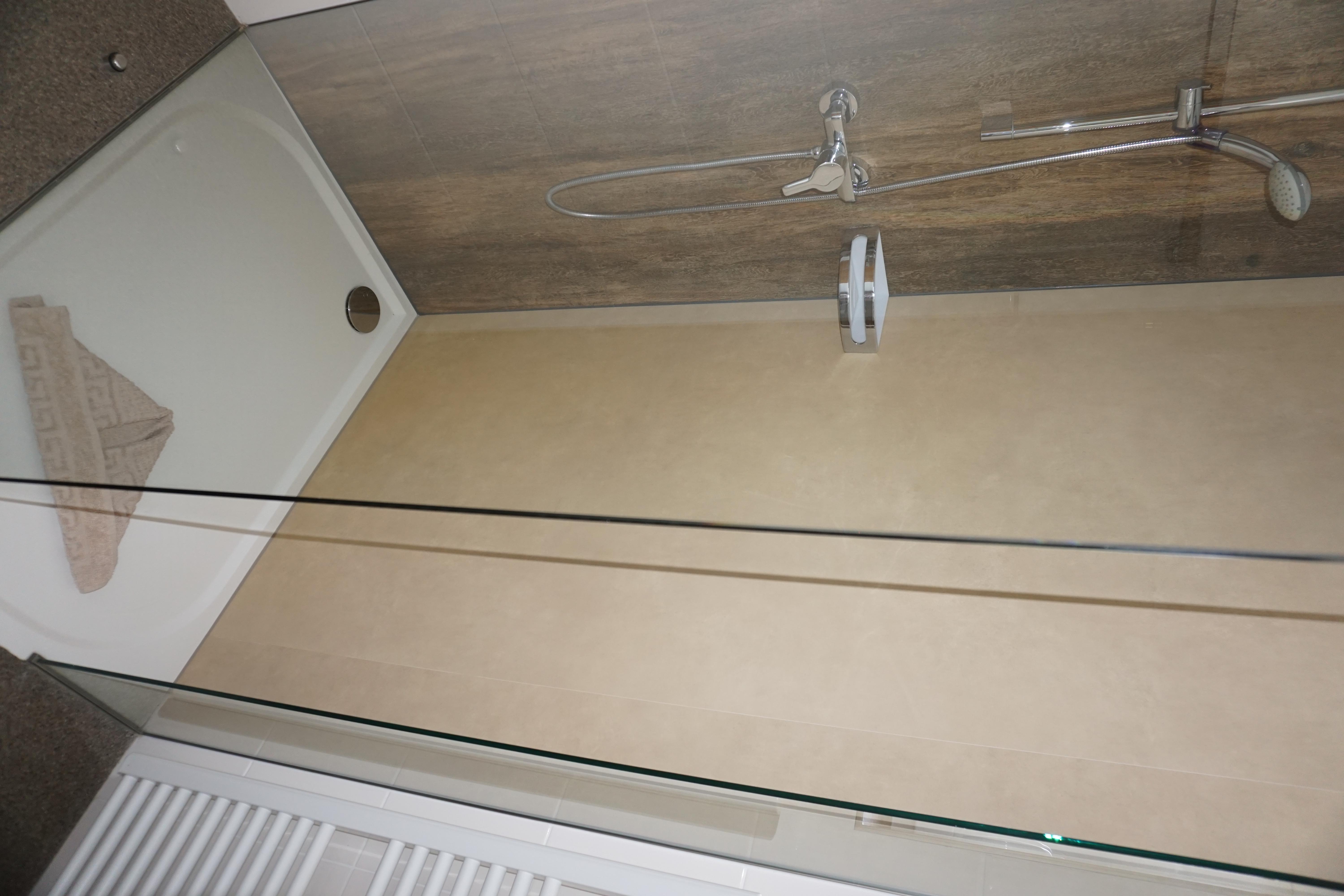 Das sehr große und geräumige Badezimmer mit Dusche und das separate WC sind ebenso wie die restliche Wohnung aufs Neueste eingerichtet und mit einer Top-Ausstattung versehen.