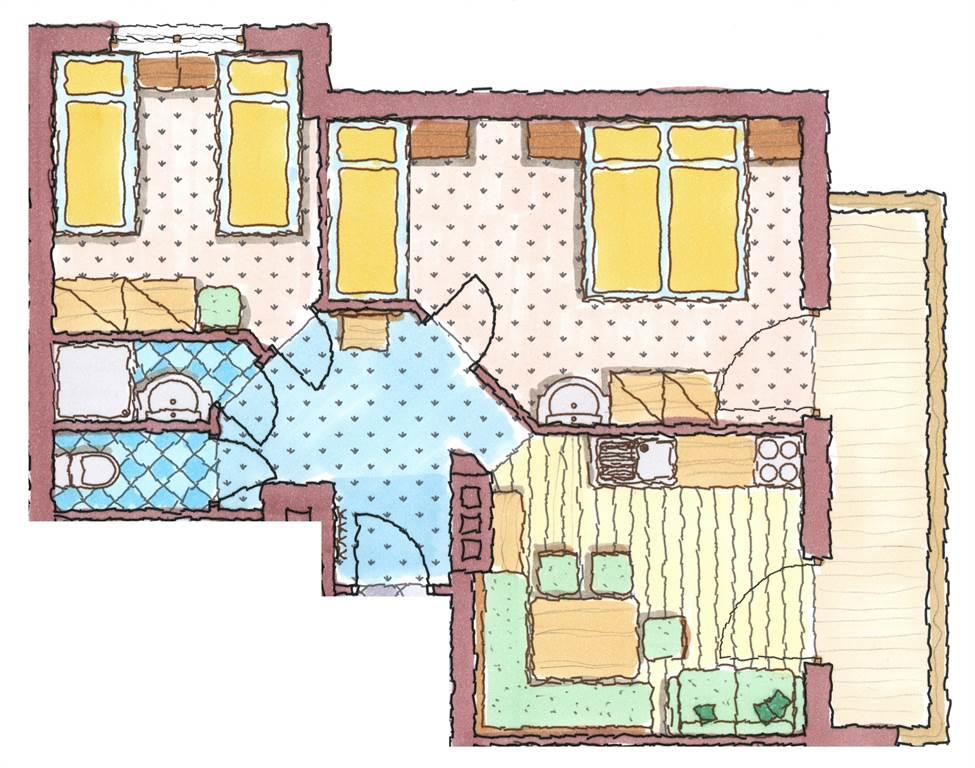 - 2 getrennte Schlafzimmer (Mansarde - 1 x mit Doppel- und 1 Einzelbett, 1 x 2 Einzelbetten)