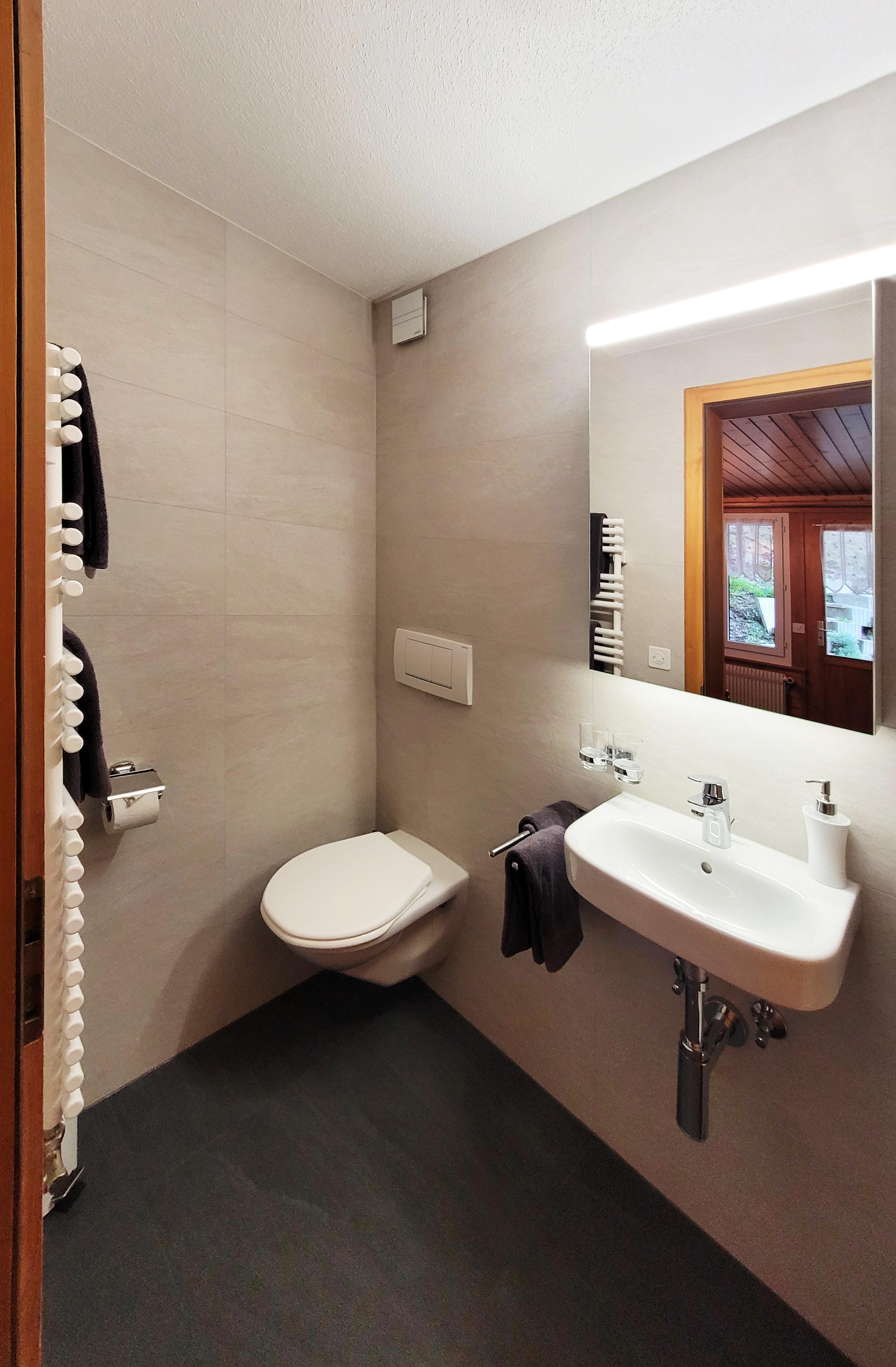 3-Zimmerwohnung (50 m2, 4 Betten), 2. Stock, 2 Doppelschlafzimmer mit Bad/Dusche/WC und Balkon Süd-West, TV, gemütlich eingerichtet, das Haus liegt 4 Gehminuten vom Dorfkern erhöht, sehr sonnige und ruhige Lage, herrliche Aussicht, in der Nähe der Luftseilbahn Hannig.