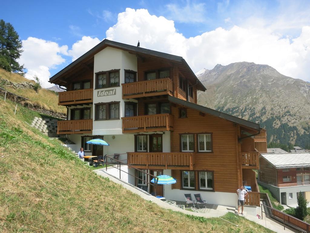Das Ferienchalet Ideal in Saas-Fee liegt in leicht erhöhter, sehr sonniger und ruhiger Lage. Innerhalb von 3 Gehminuten befinden Sie sich im Zentrum von Saas-Fee. Sämtliche touristischen Anlagen wie Luftseilbahnen, Sportplatz, Aqua Allalin, Post, Kirche, Einkaufsläden, Bäckereien und Restaurants sind bequem erreichbar. Bedingt durch die leicht erhöhte Lage beträgt die Steigung der Zugangsstrasse ca. 20 % und der Höhenunterschied beträgt ca. 25 m.